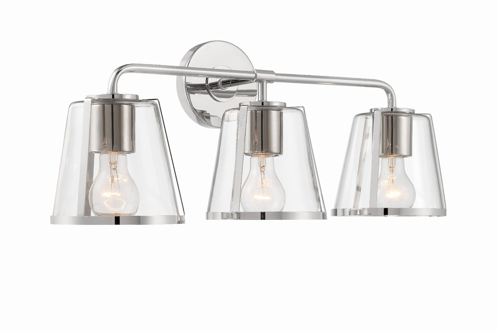 The tailored and versatile Fulton wall sconce has contrasting materials to create an eye-catching display. This fixture features a tapered glass shade that casts illumination downwards, providing bright illumination to your modern bathroom. The white or clear glass is wrapped in a metal ring with tailored lines creating an elegant contrast. Finishes include Polished Nickel, Antique Gold, and Matte Black.