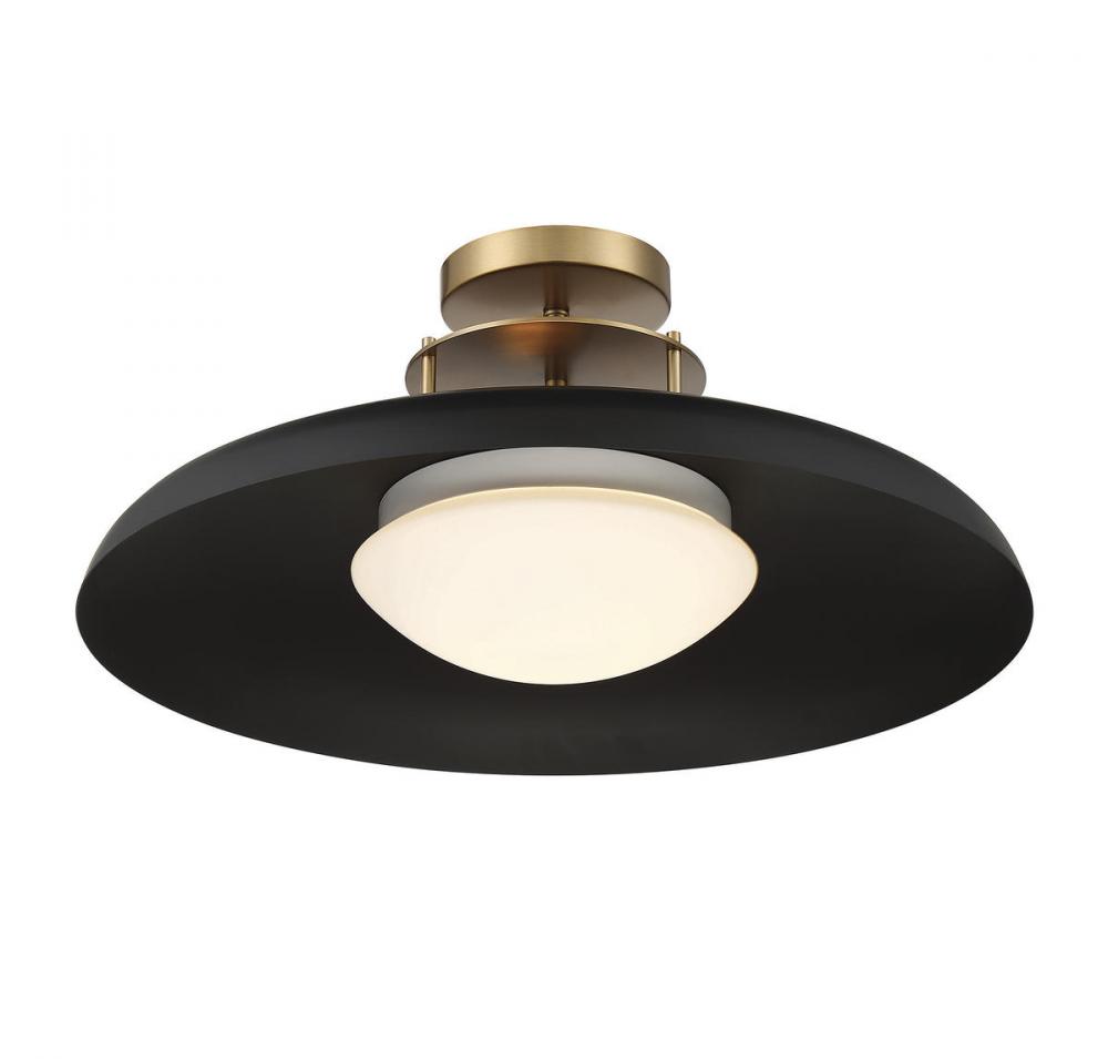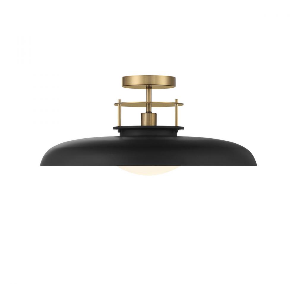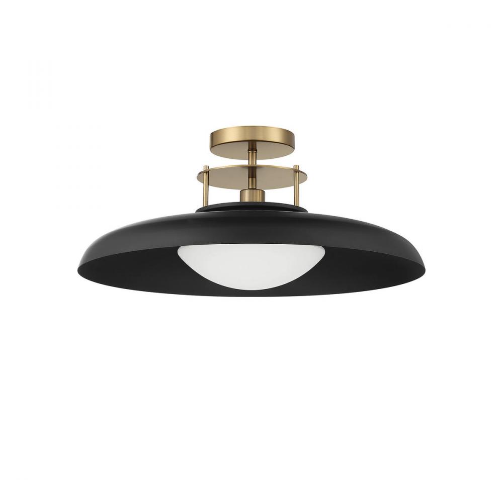 This Savoy House Gavin 1-light ceiling light brilliantly combines vintage and midcentury modern style touches to create a thoroughly modern take on illumination. Gavin uses an opal glass shade and a wide metal shade to soften and direct the light. Finished in matte black with warm brass accents. Gavin is 9" in height and 20" in width. It uses one standard size bulb of up to 60 watts.