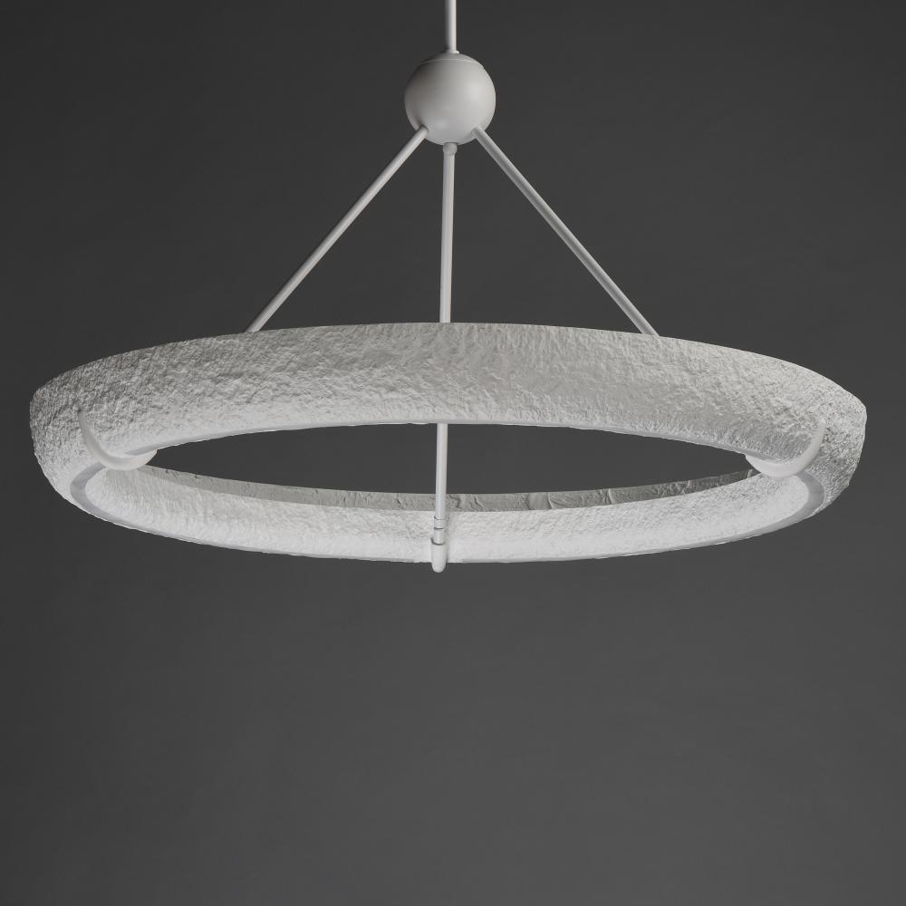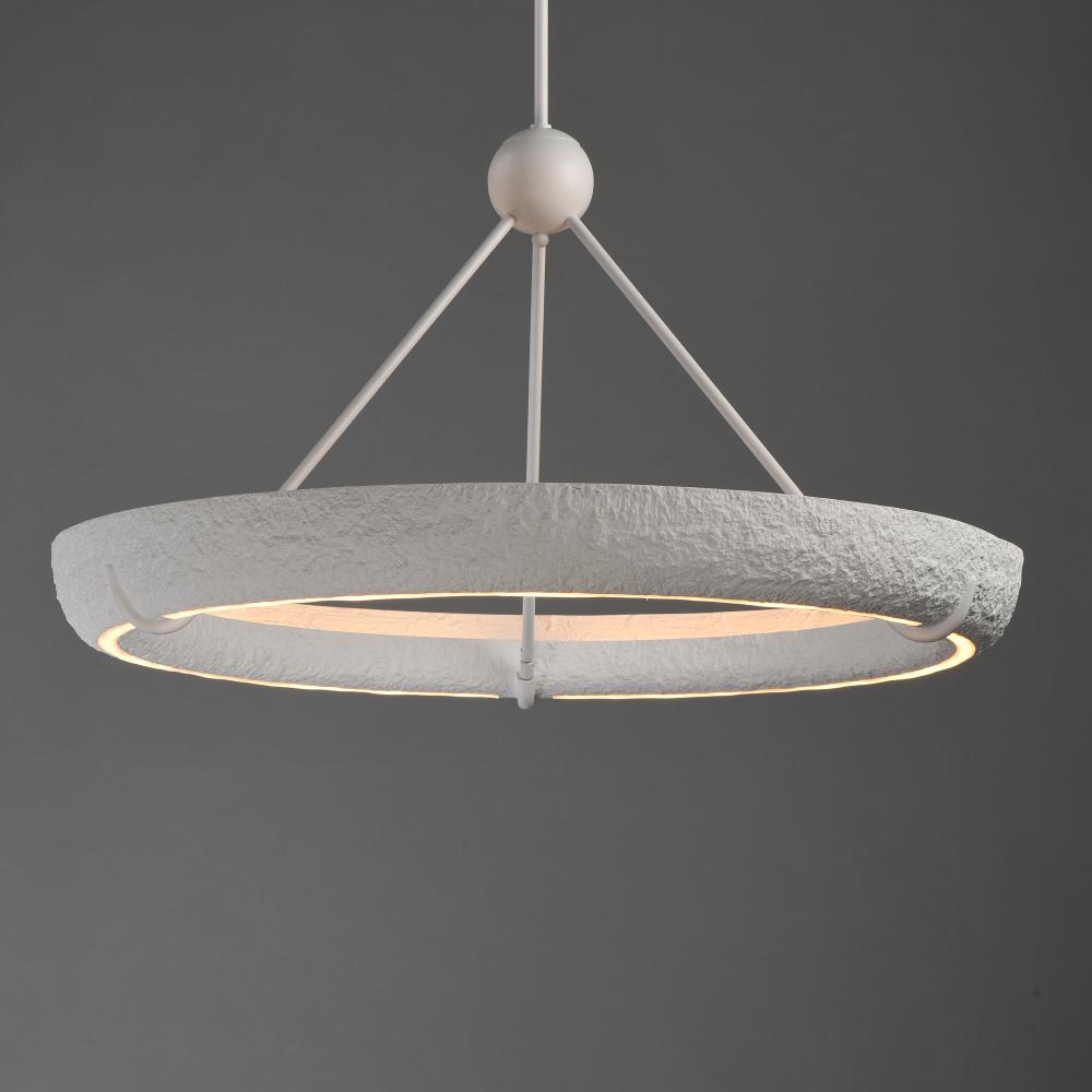 Geist reimagines 20th-century plasterwork in a sculptural ring crafted from artisan plaster. Integrated LEDs provide both uplight and downlight, creating an atmospheric glow. Available in a striking Black plaster finish as well as the classic White, Geist