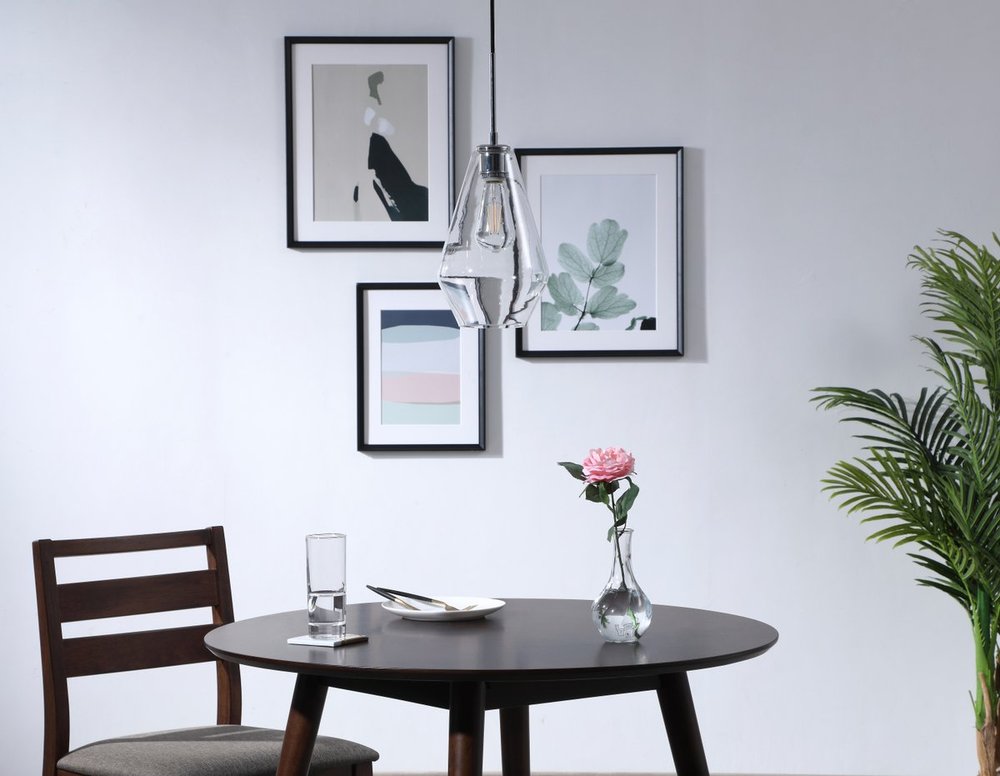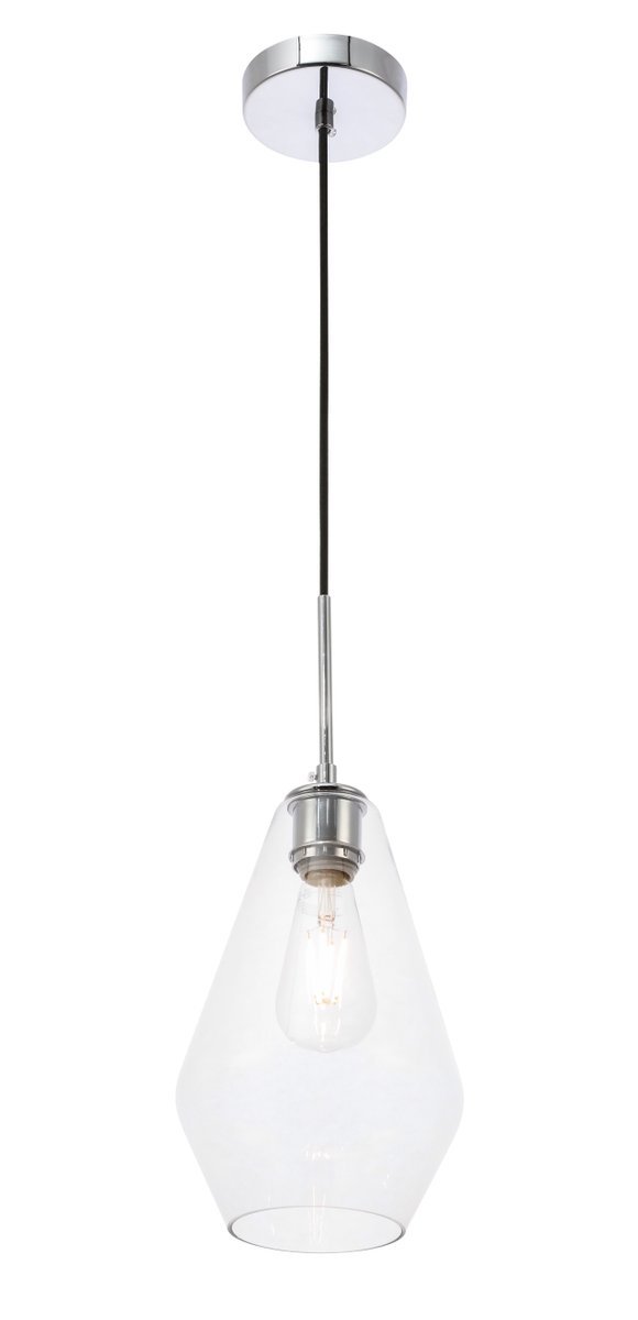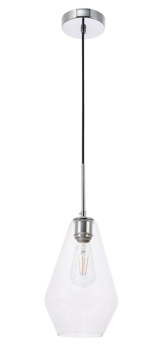 The Gene Collection of lights will be sure to have your guests admire your modern sense of style with the beautiful simplicity of its shape and form. From the solidity of the hanging cord to the clean lines that the diamond shaped shade creates, this pendant will create drama and beauty in any room of your home. Its design is both minimal enough to not take away from your style in large rooms, and stylish enough to add character in smaller spaces. Available in a brass, chrome, or black finish, with either a clear or frosted diamond glass shade, enhance your dining room, living room, or bedroom with the Gene Collection hanging pendant and live in sleek contemporary style (light bulbs not included).