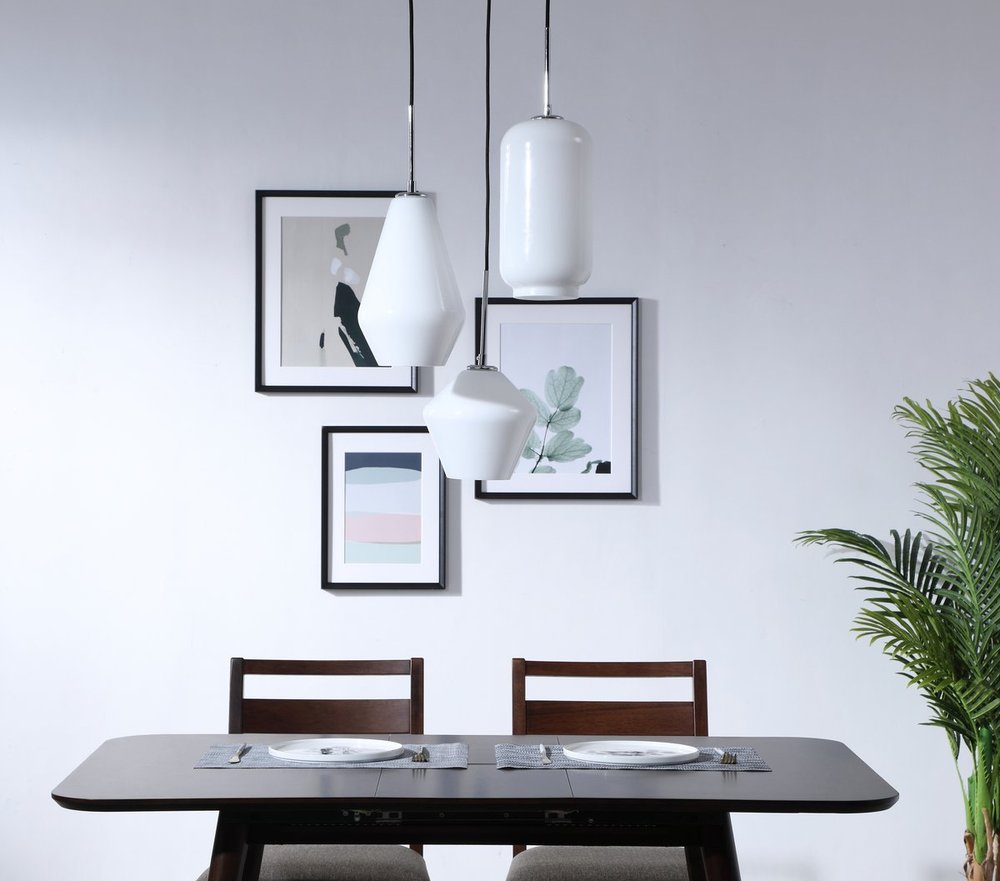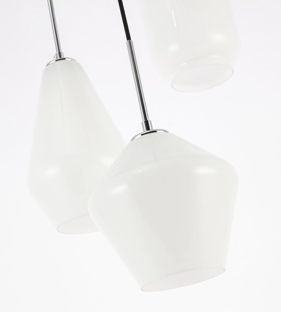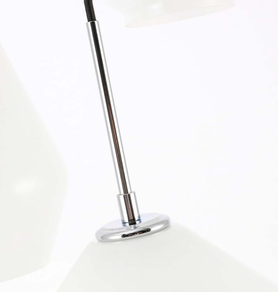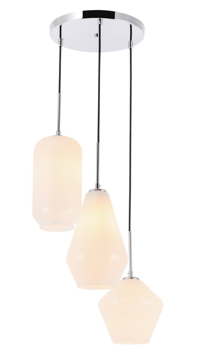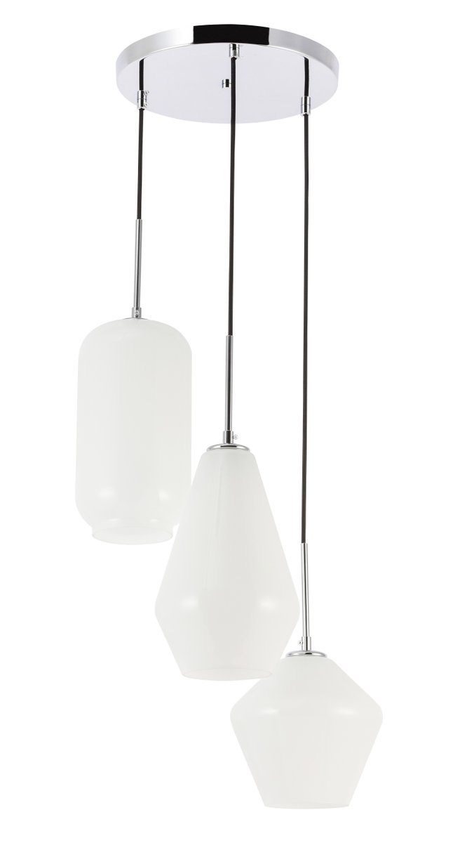 The Gene Collection of lights will be sure to have your guests admire your modern sense of style with the beautiful simplicity of its shape and form. The canopy supports three pendant lights that can be adjusted to different heights in order to create dramatic levels of lights and shadows. The pendant's clean lines created by the cords and diamond shaped shades makes this the perfect lighting addition to any home that is in need of a chic modern flair. Available in a brass, chrome, or black finish, with either a clear or frosted diamond glass shade, enhance your dining room, living room, or bedroom with the Gene Collection hanging pendant and live in sleek contemporary style (light bulbs not included).