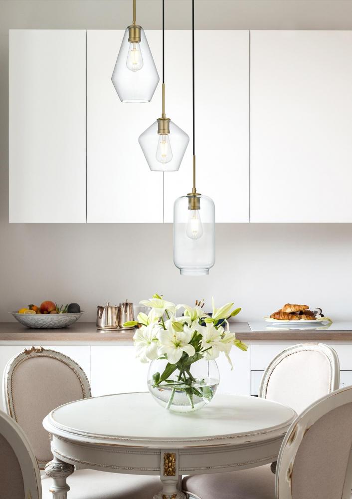 Features a clear glass shade, offering bright, unobstructed light and a clean, modern look.