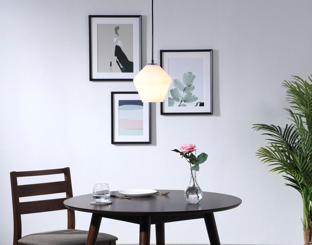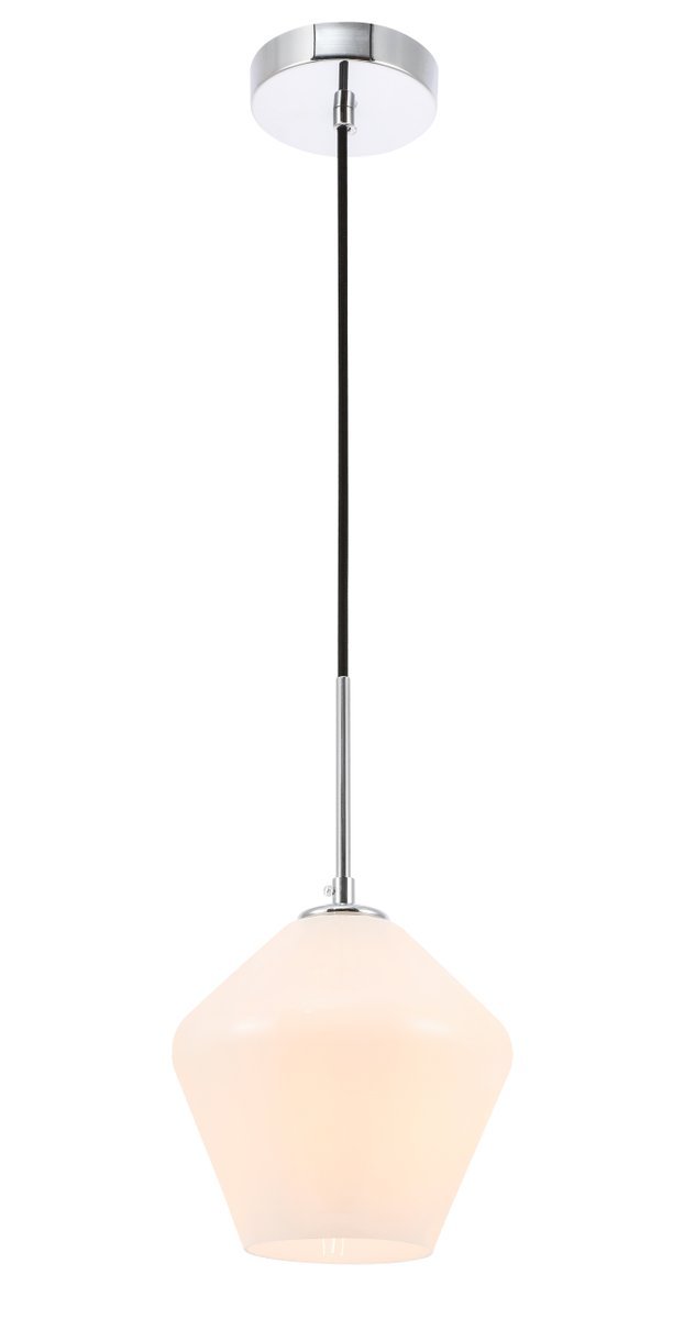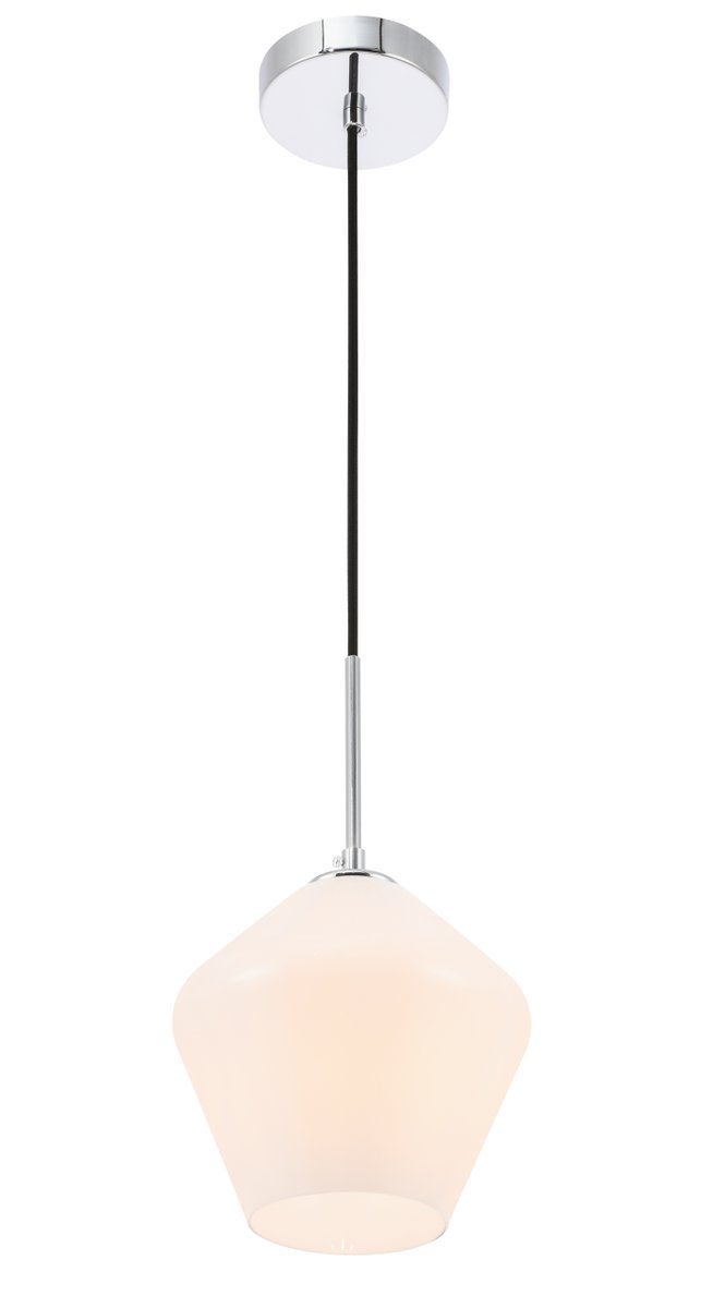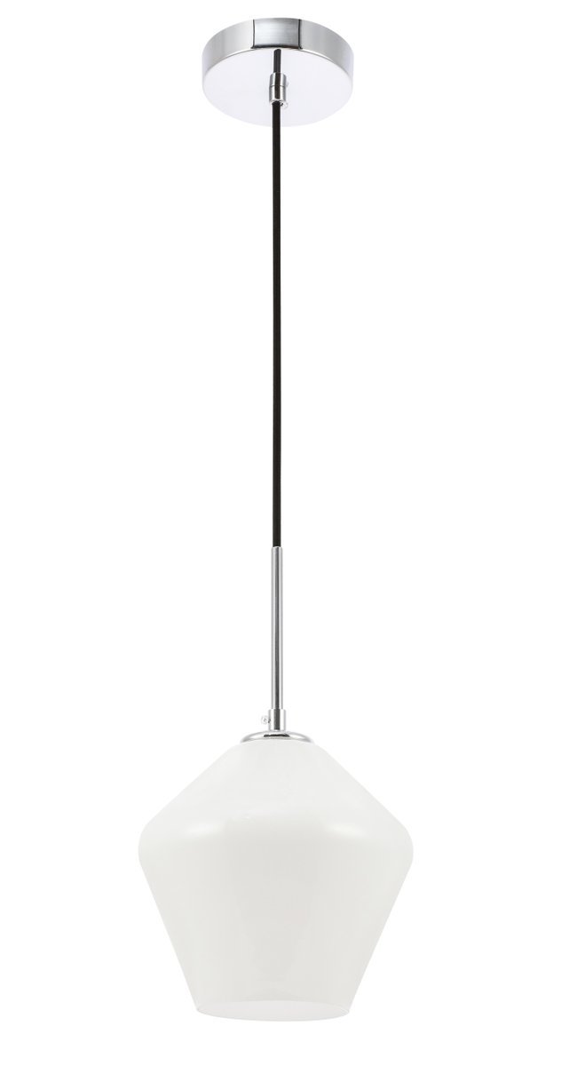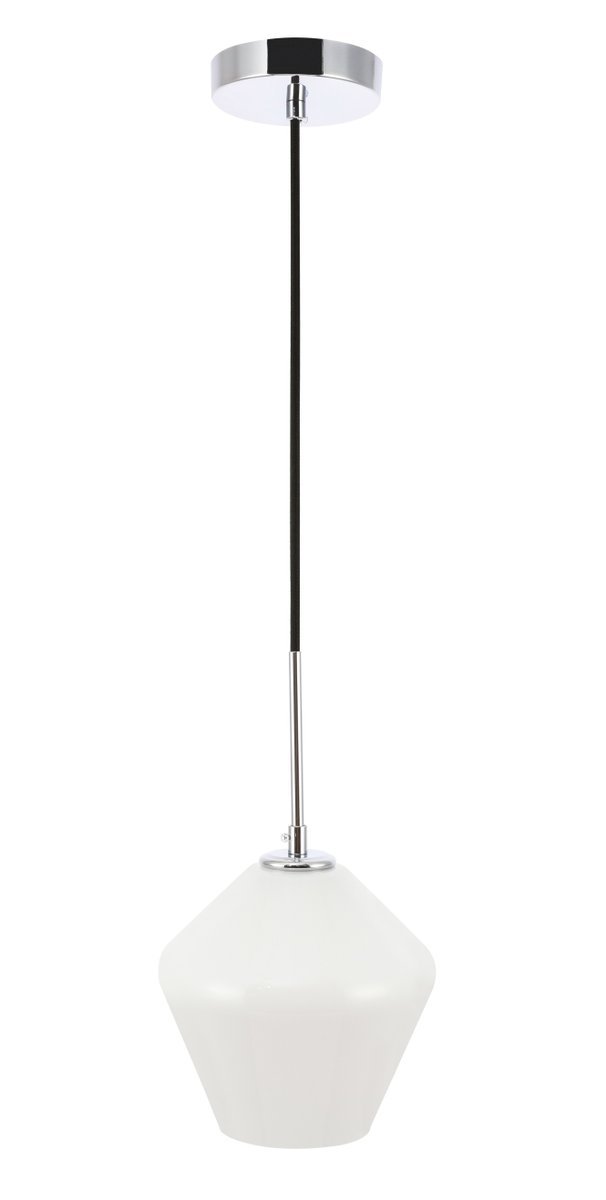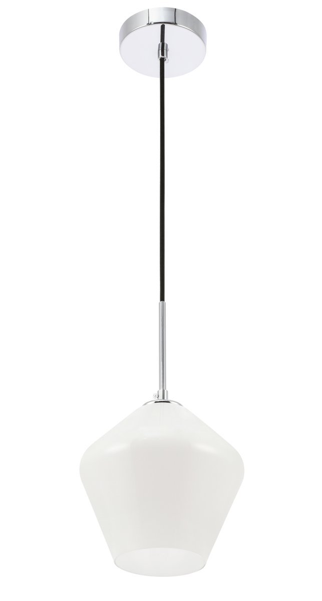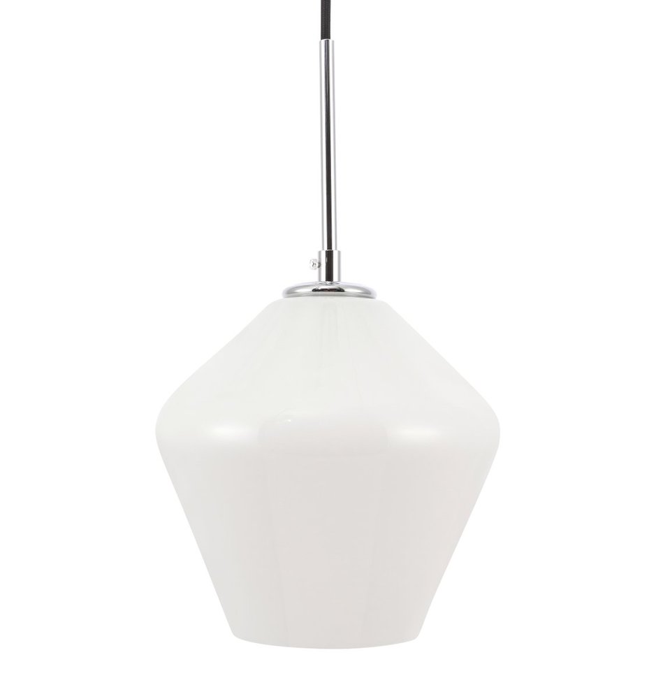 The Gene Collection of lights will be sure to have your guests admire your modern sense of style with the beautiful simplicity of its shape and form. From the solidity of the hanging cord to the clean lines that the diamond shaped shade creates, this pendant will create drama and beauty in any room of your home. Its design is both minimal enough to not take away from your style in large rooms, and stylish enough to add character in smaller spaces. Available in a brass, chrome, or black finish, with either a clear or frosted diamond glass shade, enhance your dining room, living room, or bedroom with the Gene Collection hanging pendant and live in sleek contemporary style (light bulbs not included).