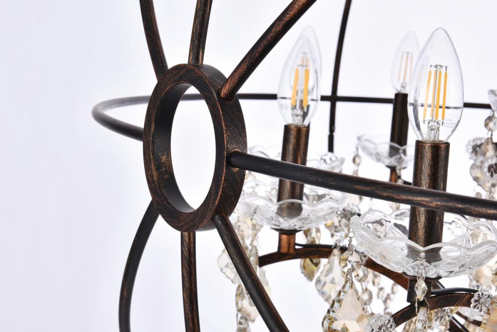 Royal-cut golden-teak crystals and 18 candelabras create a dramatic contrast with the dark-bronze finish