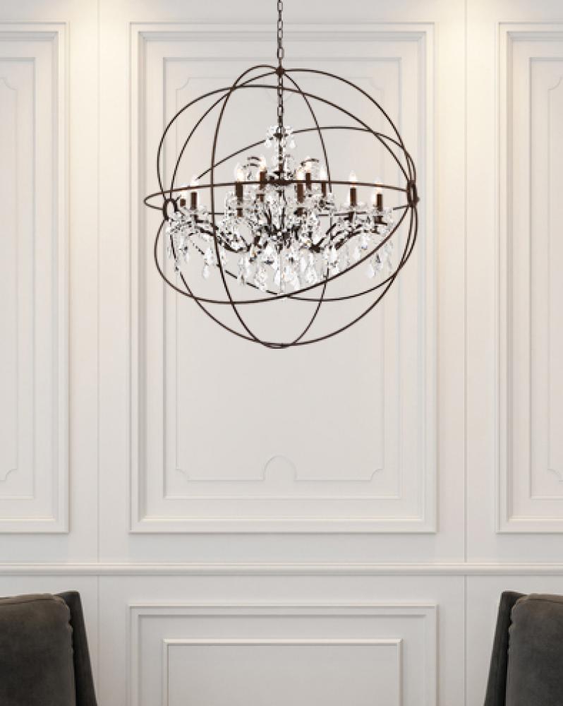 Make a statement or set the mood in your living room, dining room, or foyer with the transitional style of a Geneva chandelier. The Geneva collection is an eye-catching design that starts with the Old World feel of a classic crystal chandelier and then suspends it in a lamp body that takes on the New Age look of a gyroscope. Graceful candelabras are embellished with several sizes and layers of royal-cut crystals in clear, golden teak, or Silver shade that transform into a luminous globe when framed in a sphere finished in dark bronze, polished nickel, or rustic intent.