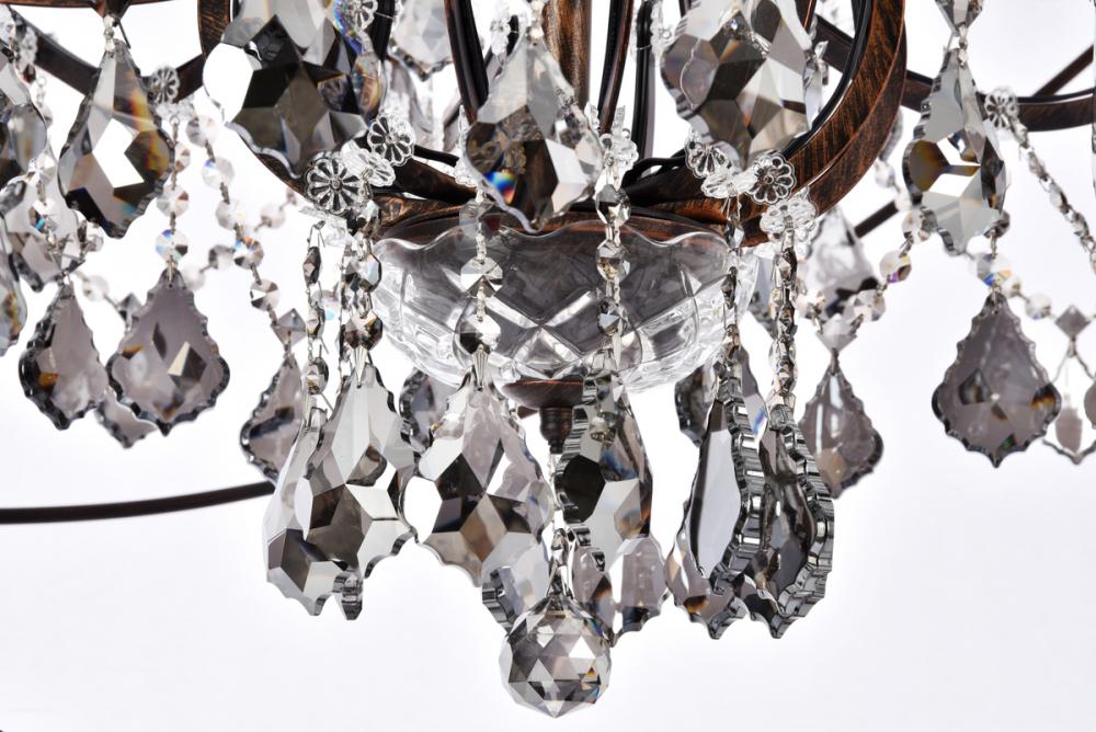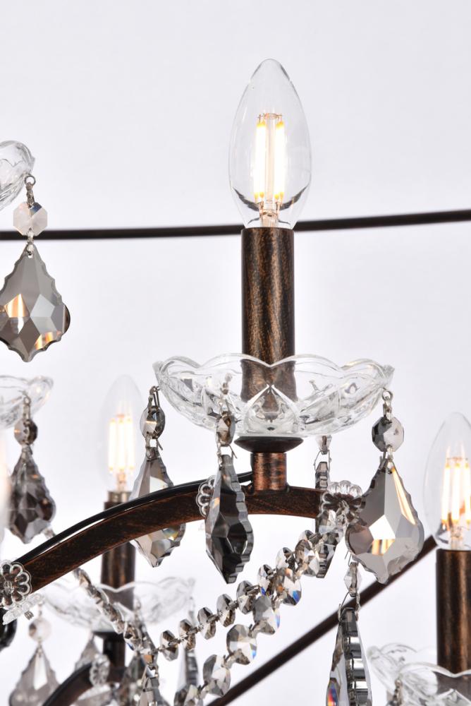 Royal-cut silver-shade crystals and 25 candelabras beautifully complement the dark-bronze finish