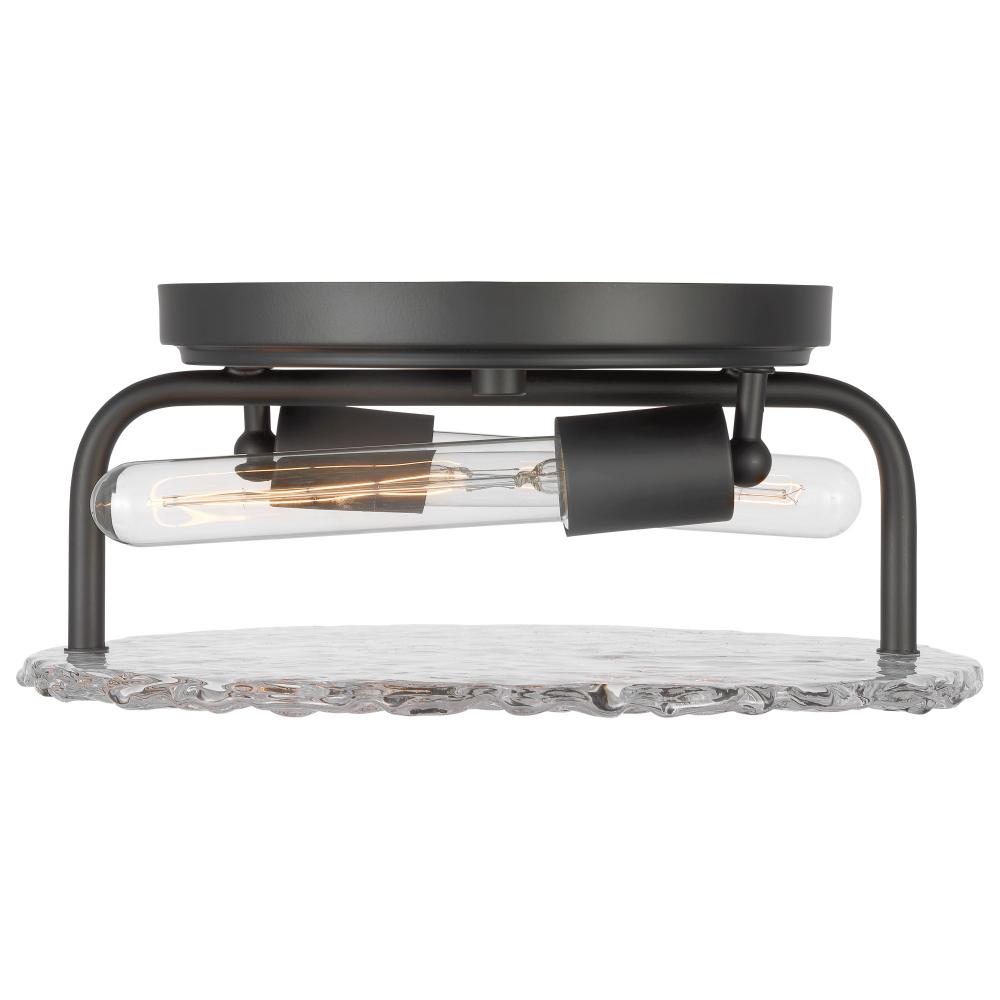 Glacier; 2 Light Large Flush Mount; Medium Base; 60 Watt; Matte Black; Ice Glass
