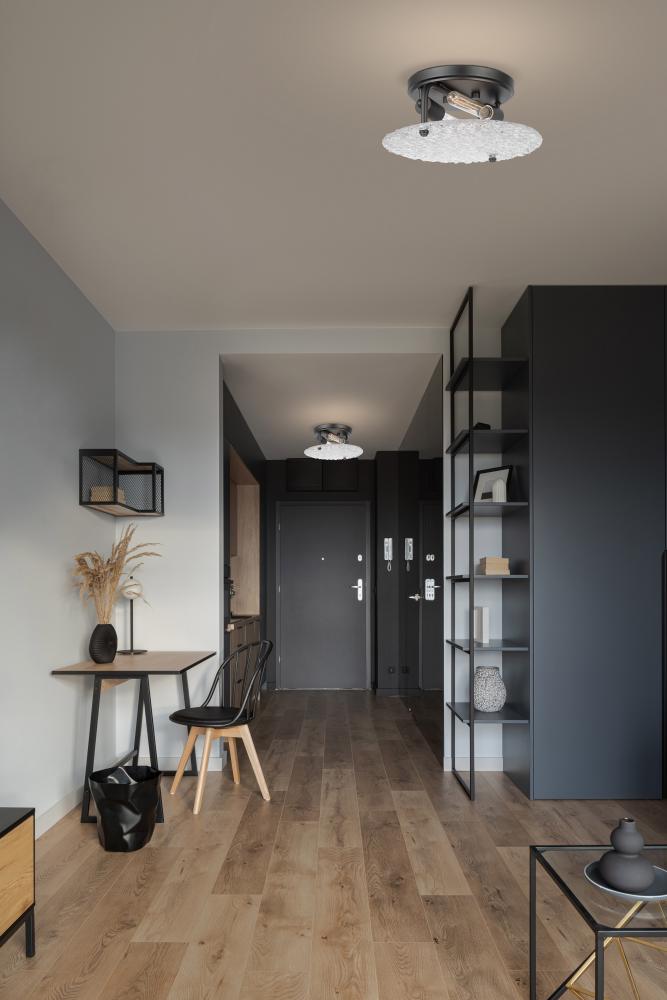 The Glacier 60-7810 flush mount is styled with contemporary elements and rich finishes. A deep black adorns the fixture body and socket covers, an arresting ice glass completes the sleek silhouette. Pairing this wonderful fixture with vintage bulbs takes t