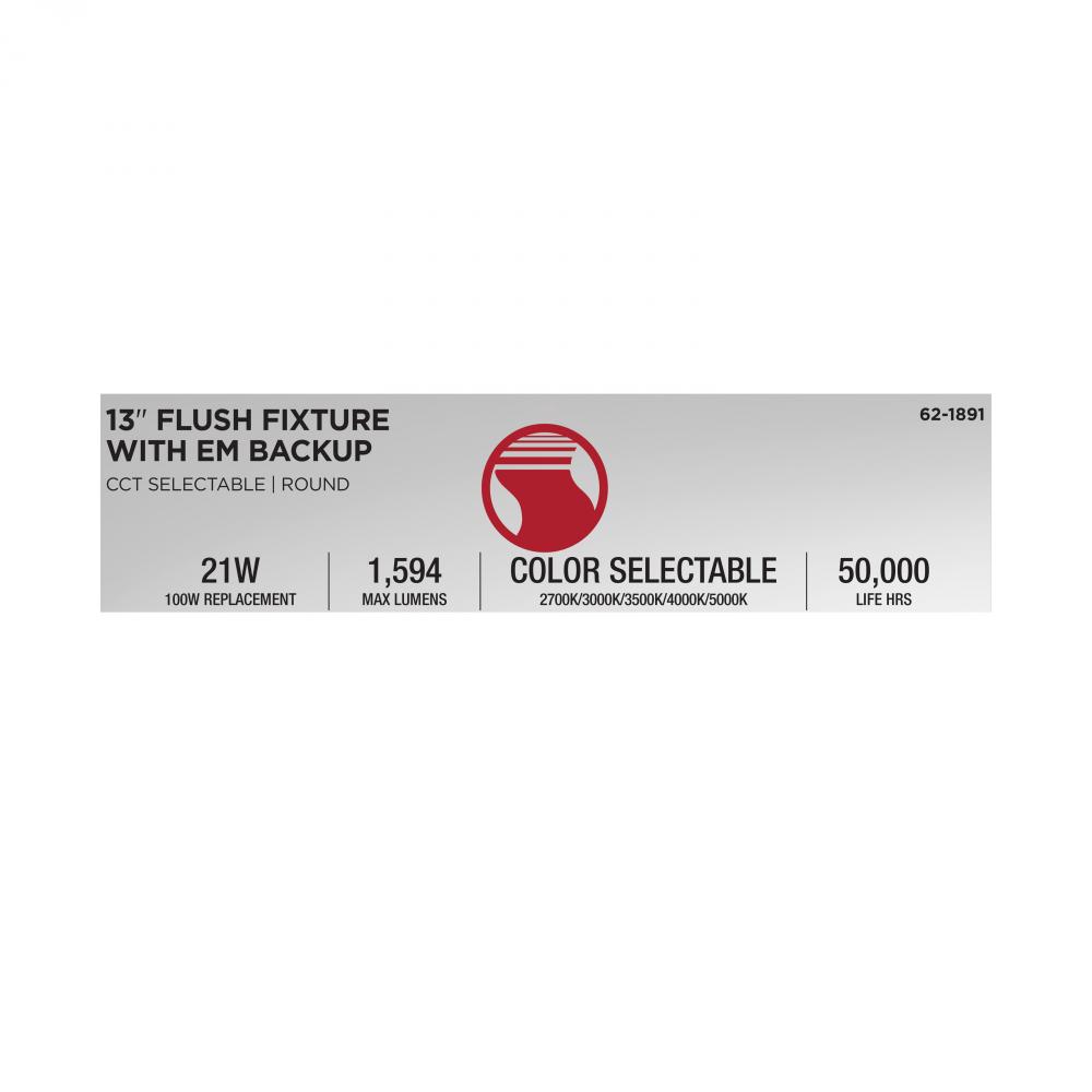 The SATCO NUVO 13-Inch Glamour LED flush mount fixture features a built-in emergency battery backup that provides up to 90 minutes of illumination during power outages-offering critical reliability with an elegant design. An integrated emergency test butto