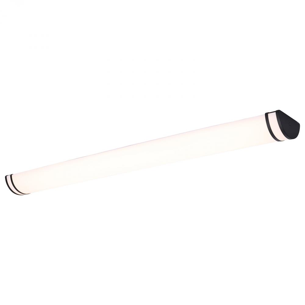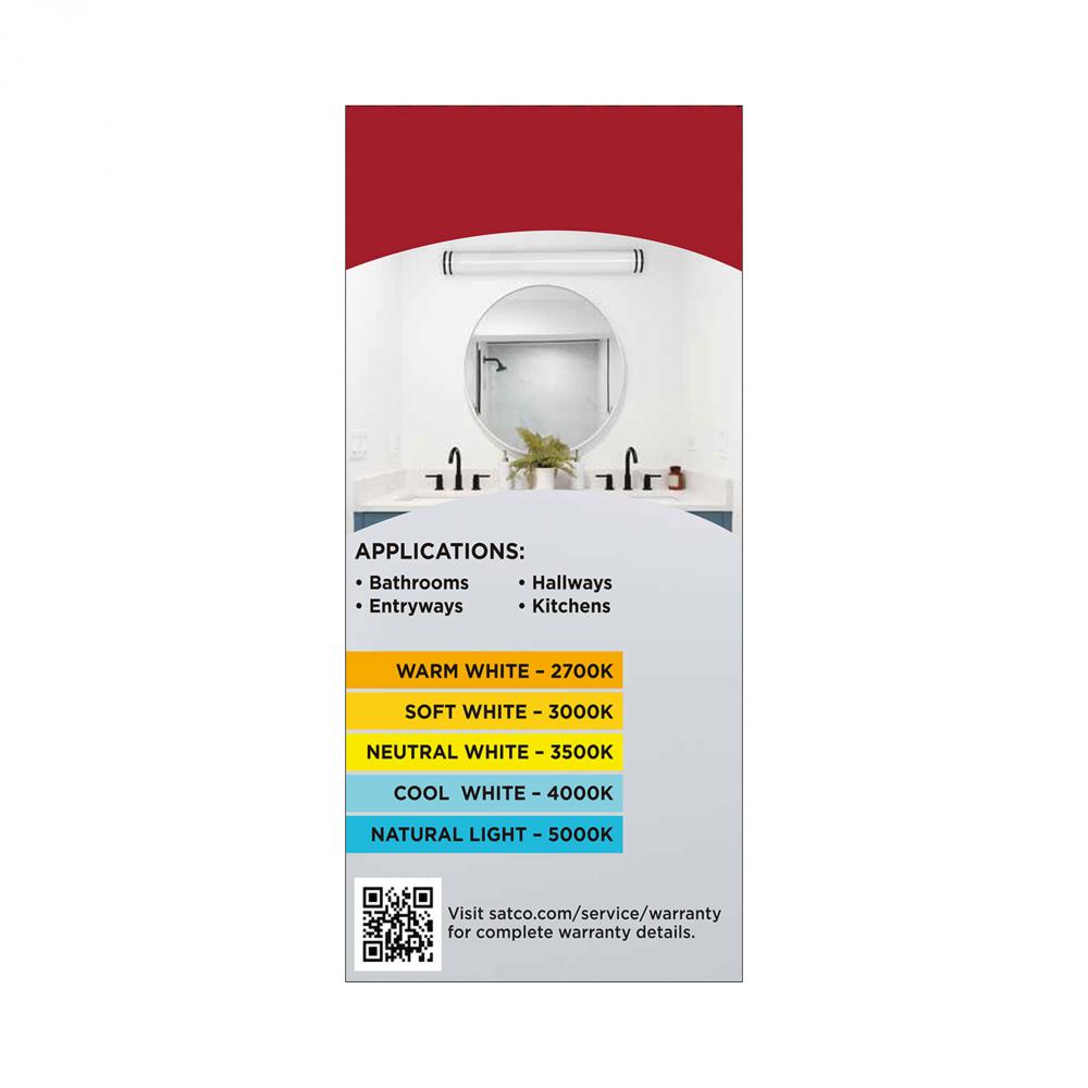 The SATCO NUVO 62-1972 Glamour 49-inch Vanity Fixture in white with a black finish combines sleek design with 5 CCT selectable technology (2700K–5000K) and 90 CRI illumination for superior color rendering. This 50-watt fixture replaces 300W incandescent