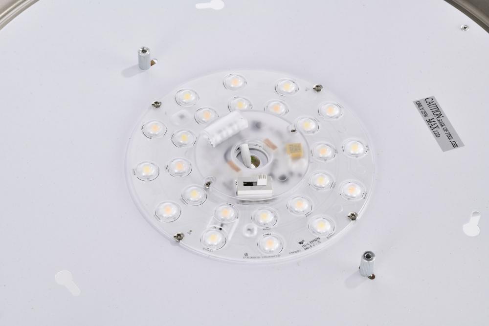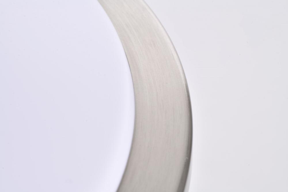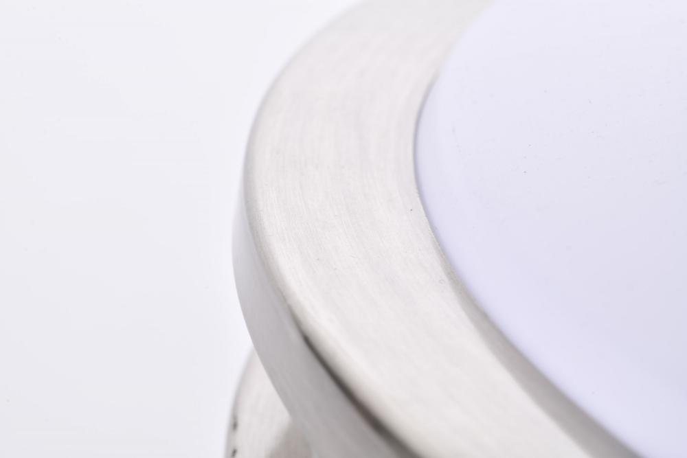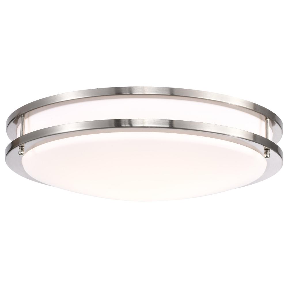 The Glamour 62-1637 25-watt, 17-inch flush mount fixture is a sleek lighting solution for the home. Illuminate hallways, bathrooms, or office spaces with this dimmable flush mount fixture in a brushed nickel finish. With ColorQuick technology, the simple,