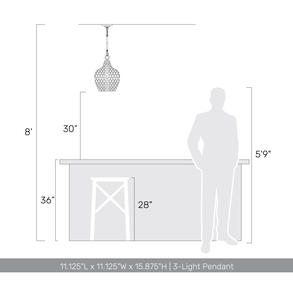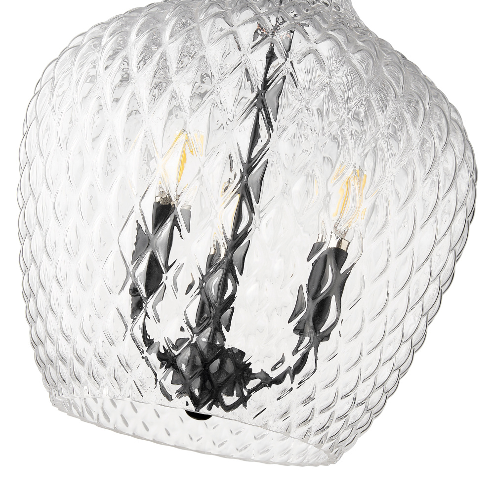 Enhance your interiors with the inviting charm of the Golden Lighting Adeline 3-light Pendant. Featuring a glass shade and a sleek Matte Black finish, this pendant creates a warm and stylish focal point in any room. The clear glass shade emits brilliant, unobstructed light, providing a decorative yet functional illumination. Its texture and polished detail ensure it stands out as a beautiful centerpiece while serving practical lighting needs. The Modern finish of Matte Black offers versatility, making it an ideal fit for various decor styles from minimalist to industrial. Rated for dry locations, it's suitable for indoor areas away from moisture, such as kitchens, dining rooms, and entryways. With adjustable height ranging from 29" to 63" and overall dimensions of 11.13"W x 15.88"H x 11.13"D, it requires three E12 candelabra base bulbs (not included), with a maximum wattage of 60 per bulb. Elevate your home with quality illumination that resonates with both style and warmth, ideal for everyday living spaces.