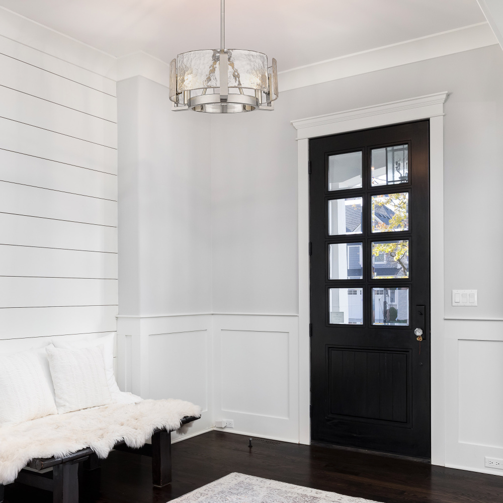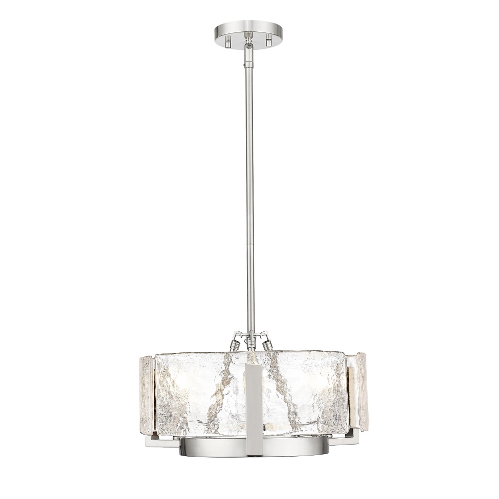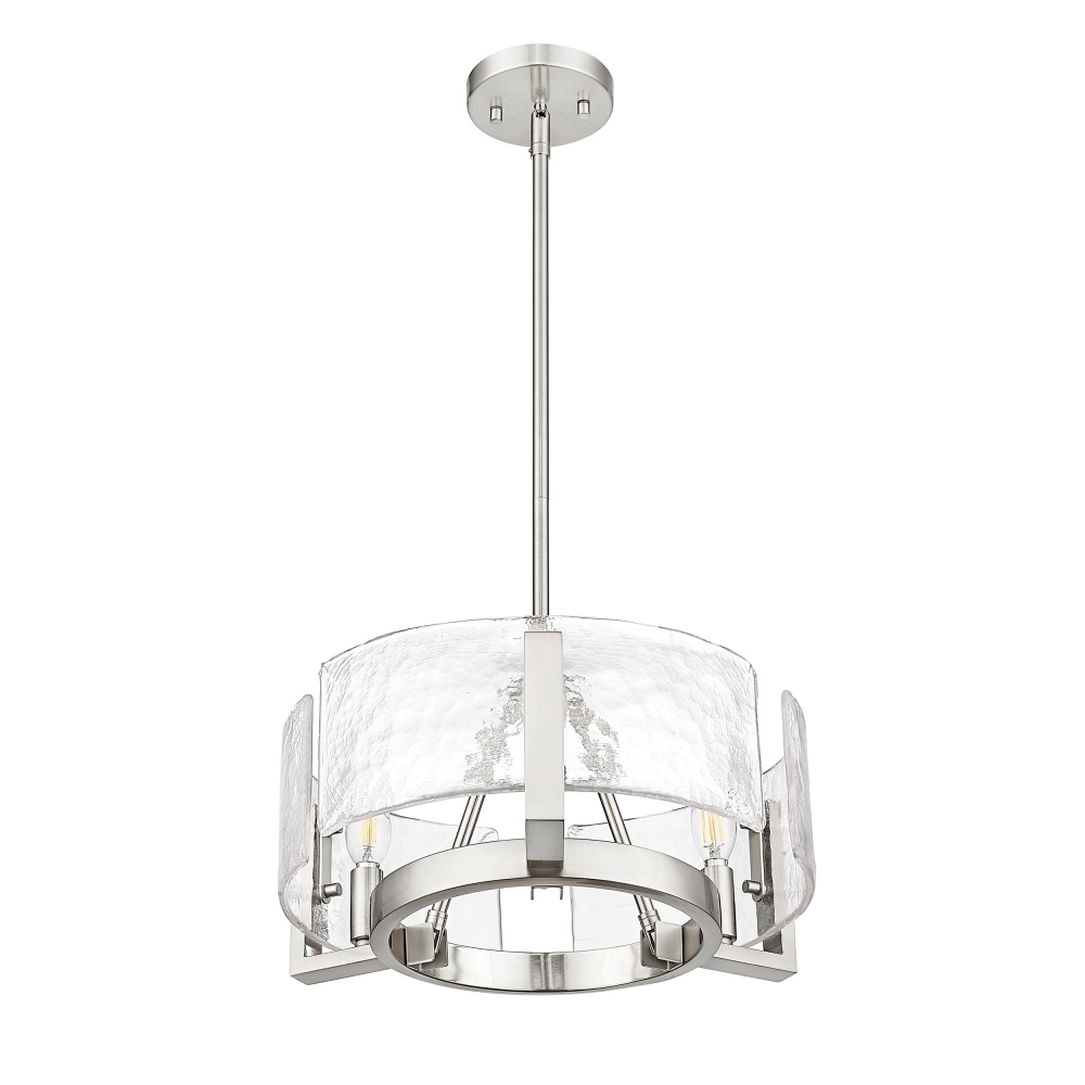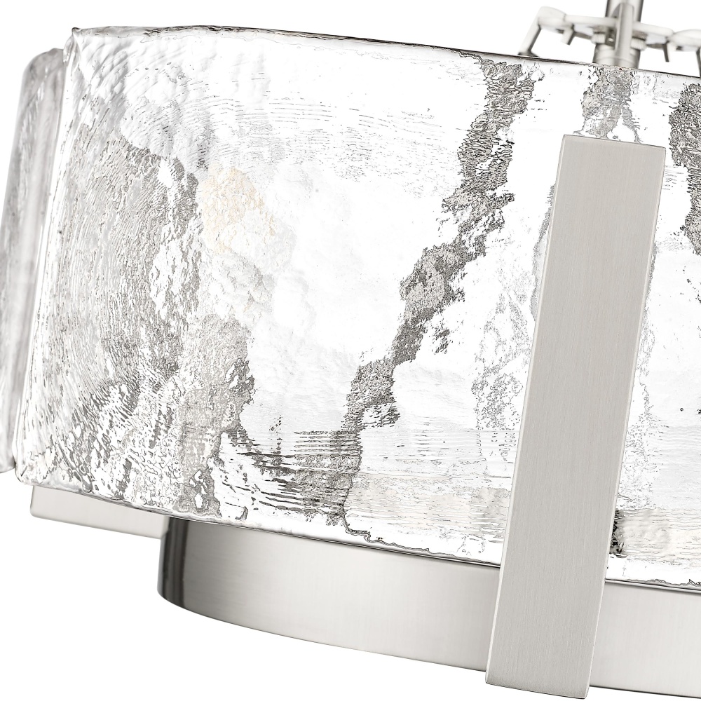 Bring classic elegance into your home with the Golden Lighting Aenon 3-light Chandelier in Pewter. Featuring a glass shade and a pewter frame, it creates a welcoming atmosphere. The hammered water glass shade, renowned for its intricate texture, captures the beauty of natural elements like flowing water, elegantly refracting light to cast intriguing patterns in your space. The subtle warmth of the pewter finish, accentuated by a satin lustrous sheen, enhances the old-world charm while remaining versatile and sophisticated. Designed for diverse applications, this chandelier is damp location rated, making it suitable for covered and semi-enclosed spaces such as bathrooms, covered porches, and laundry rooms. Its convertible design ensures adjustable hanging heights from 10.75" to 58", ideal for both flat and sloped ceilings. Overall dimensions are 16.5"W x 8.38"H x 16.5"D, requiring 3 E12 candelabra base bulbs (not included) with a maximum wattage of 60 per bulb, making it a perfect addition to elevate your decor with quality craftsmanship and timeless beauty.