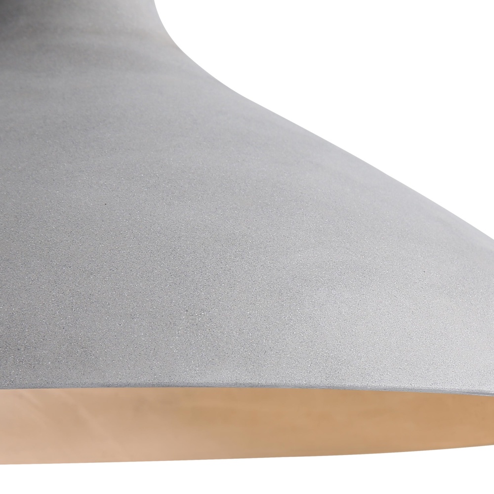 Bring architectural modernism elegance into your home with the Golden Lighting Aethera 22in Integrated LED Pendant in Grey Cement. Featuring a Cement shade and a Matte Black frame, this pendant creates a welcoming atmosphere. The attractive Cement shade presents a neutral light-to-medium gray surface, showcasing the raw and industrial character of genuine cast concrete, making a stunning decorative piece. The Matte Black finish embodies timeless elegance, with its smooth, non-reflective surface absorbing light, adding sophistication to various decor styles. Perfect for kitchens, dining rooms, and entryways, this fixture is damp location rated, suitable for spaces with occasional moisture. Easily install it on angled ceilings, as it is sloped-ceiling compatible and adjustable in height from 13.625" to 133.625". Overall dimensions are 21.63"W x 11.75"H x 21.63"D, featuring integrated LED technology rated for 1300 lumens, offering a long-lasting and dimmable light source that can adapt between three color temperatures. Enhance your living spaces with this beautifully crafted pendant that balances aesthetic appeal with functionality and durability.