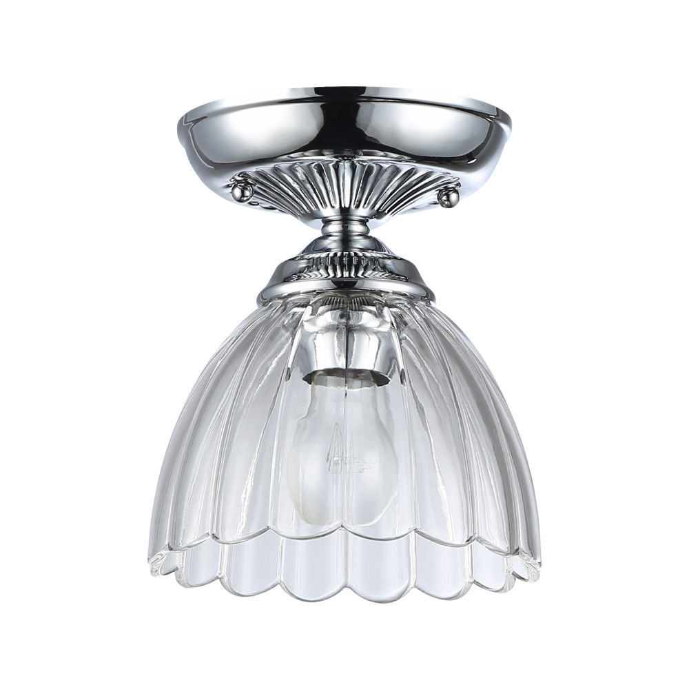 Bring timeless elegance into your home with the Golden Lighting Audra 1-light 7in Semi-Flush Mount. Featuring a glass shade and a Chrome frame, it casts a vibrant and welcoming atmosphere. The clear glass shade offers brilliant, unobstructed light, polished to a high-gloss shine to beautifully highlight both the bulb and the fixture design. This versatile shade complements a broad range of styles, making it an ideal choice for modern and classic settings alike. The Polished Chrome finish provides a crisp, clean aesthetic with a reflective surface that adds brightness and sophistication to your decor. Its durability and easy maintenance make it a practical addition to your home. Designed for a blend of style and function, this fixture is damp location rated, making it suitable for areas with occasional moisture, such as bathrooms and covered porches. Perfect for entryways, kitchens, and mid-height ceilings, it effortlessly enhances any space. Overall Dimensions: 6.88"W x 8"H x 6.88"D. Requires 1 E26 Medium base bulb (not included) with a maximum wattage of 60. Experience opulent lighting with the Audra collection!