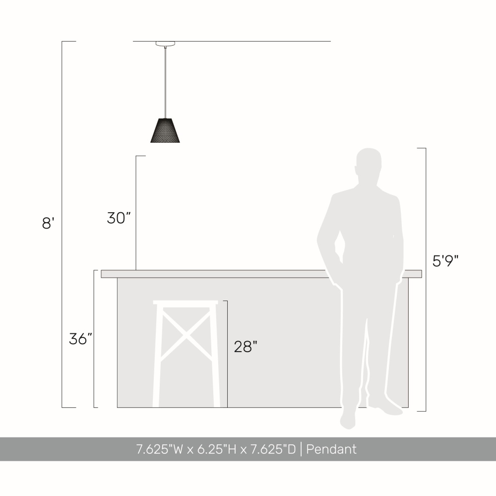 Bring modern elegance into your home with the Golden Lighting Clarus 8in Integrated LED Pendant. Featuring a gray cement shade and a matte black frame, it creates a welcoming atmosphere in any setting. The gray cement shade, meticulously crafted from genuine cast concrete, presents an architectural aesthetic with a raw, industrial texture that beautifully complements contemporary styles. The matte black finish is smooth and versatile, suited for various décor. This pendant is suitable for damp locations, making it ideal for entryways, bathrooms, or compact dining areas. With adjustable height (min: 8.125" - max: 126.25"), installation is simple even on sloped ceilings. Overall dimensions are 7.63"W x 6.25"H x 7.63"D, and it offers integrated LED technology with a luminous output of 350 lumens, featuring an adjustable color temperature setting (3000K, 4000K, 5000K). _Transform your space with this stylish pendant fixture._