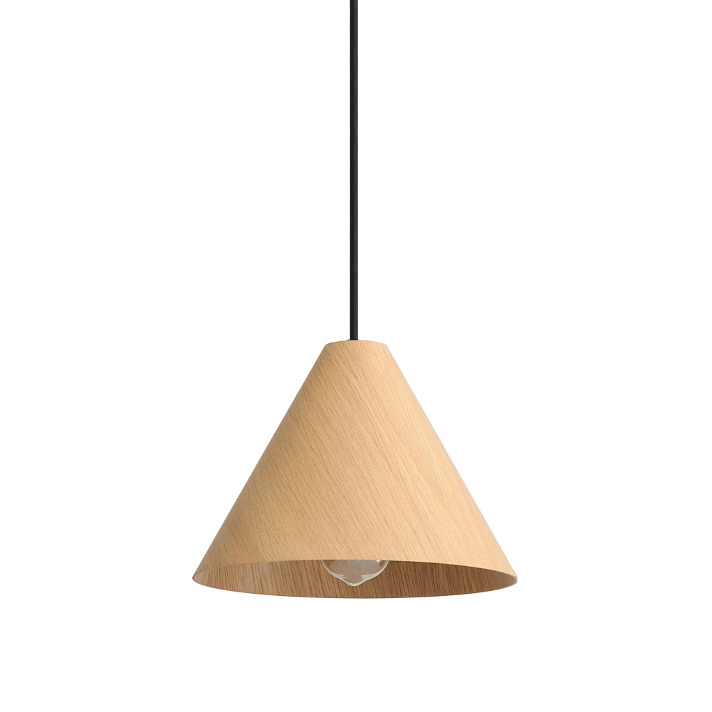 Bring modern style into your home with the Golden Lighting Conique 1-light 10in Pendant. Featuring a wood shade and a light walnut finish, it creates a welcoming atmosphere. The wood shade showcases a light walnut finish that features a pale, natural wood grain in soft tones, celebrating the beauty of natural materials. This design is perfect for a clean, organic aesthetic that invites warmth into any space. The light walnut finish reflects an airy and light design, making it ideal for modern Scandinavian-inspired homes. Its smooth, matte surface enhances its natural appeal, bringing minimalist charm to your decor. Dry location rated, this pendant is suitable for kitchens, dining rooms, or bedrooms. Installation is easy with sloped-ceiling compatibility and adjustable height from 7.875" to 127.875". It requires 1 E26 Medium base bulb (not included), max 40 wattage per bulb. Overall dimensions are 9.88"W x 6.88"H x 9.88"D. Enhance your space with this elegant pendant that radiates a stylish modernity.