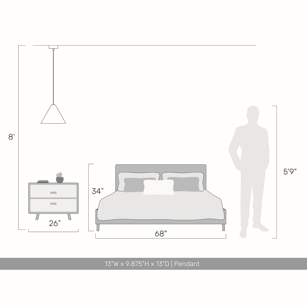 Bring modern elegance into your home with the Golden Lighting Conique 1-light 13in Pendant in Light Walnut. Featuring a wood shade and a Light Walnut frame, it creates a welcoming atmosphere. The wood shade provides a light, airy effect, showcasing the beauty of natural materials. Incorporating a Light Walnut finish, this pendant highlights a pale, natural wood grain, adding minimalist warmth to any space. Ideal for kitchens, dining rooms, or bedrooms, it is Dry Location Rated for indoor use and is compatible with sloped ceilings for versatile installation. The adjustable height ranges from 10.875" to 130.875", allowing customization for your unique needs. Overall dimensions are 13"W x 9.88"H x 13"D, using 1 E26 Medium base bulb (not included), max 40 wattage. Enhance your space with this sophisticated, quality fixture that radiates both style and simplicity.