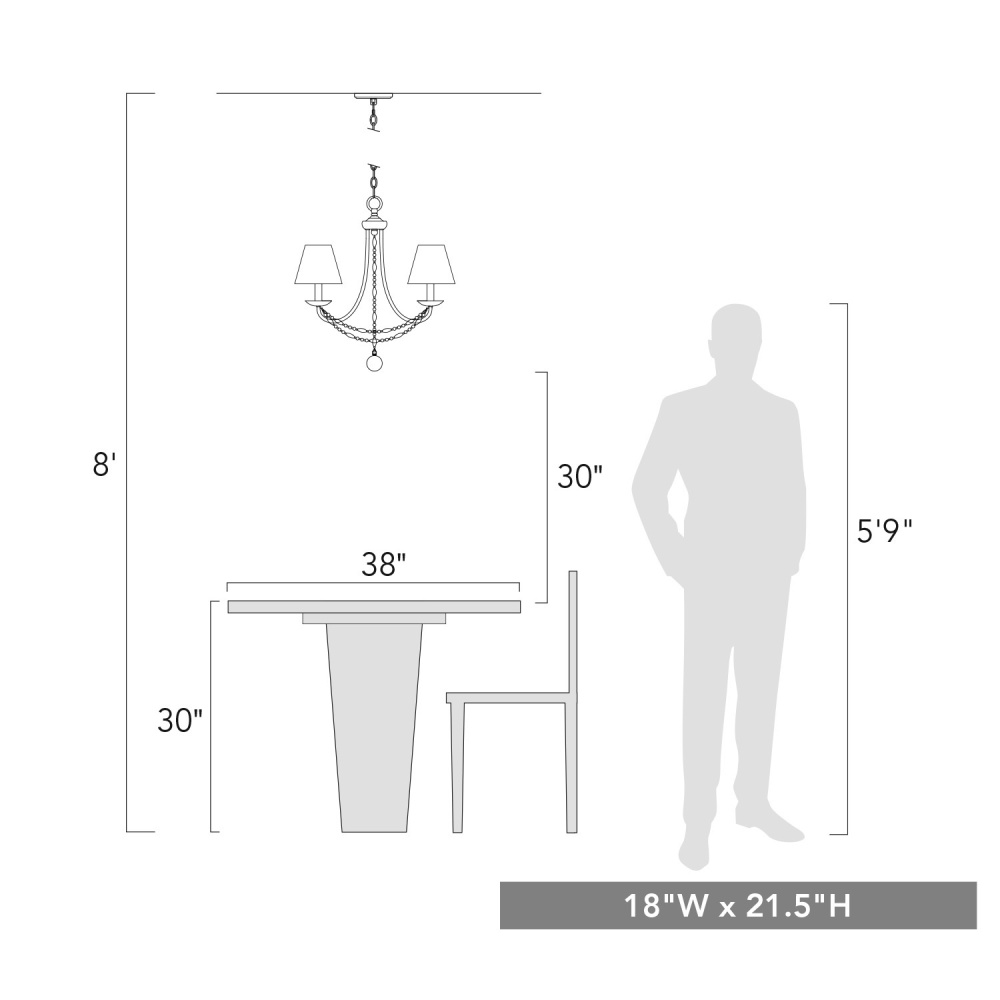 Bring modern elegance into your home with the Golden Lighting Mirabella 3-light Chandelier. Featuring a sleek design and a Matte Black finish, it creates a refined atmosphere. Draped swags of beaded glass provide a delicate, jewelry-like sparkle, enhancing your decor and adding a touch of luxury. The Matte Black finish is the epitome of contemporary style, its deep, non-reflective surface absorbs light, offering a sophisticated touch suitable for diverse interiors from minimalism to bold designs. Ideal for dining rooms, foyers, and other living spaces, the chandelier is Dry Location Rated, ensuring it's safe for indoor areas. It is Sloped-Ceiling Compatible and Adjustable in height from 23.375" to 95.375", providing versatility for your installation needs. Overall Dimensions: 18"W x 21.5"H x 18"D. Requires 3 E12 Candelabra base bulbs (not included) with a maximum wattage of 60 per bulb. Enhance your home decor with this luxurious chandelier that combines modern style with quality craftsmanship.