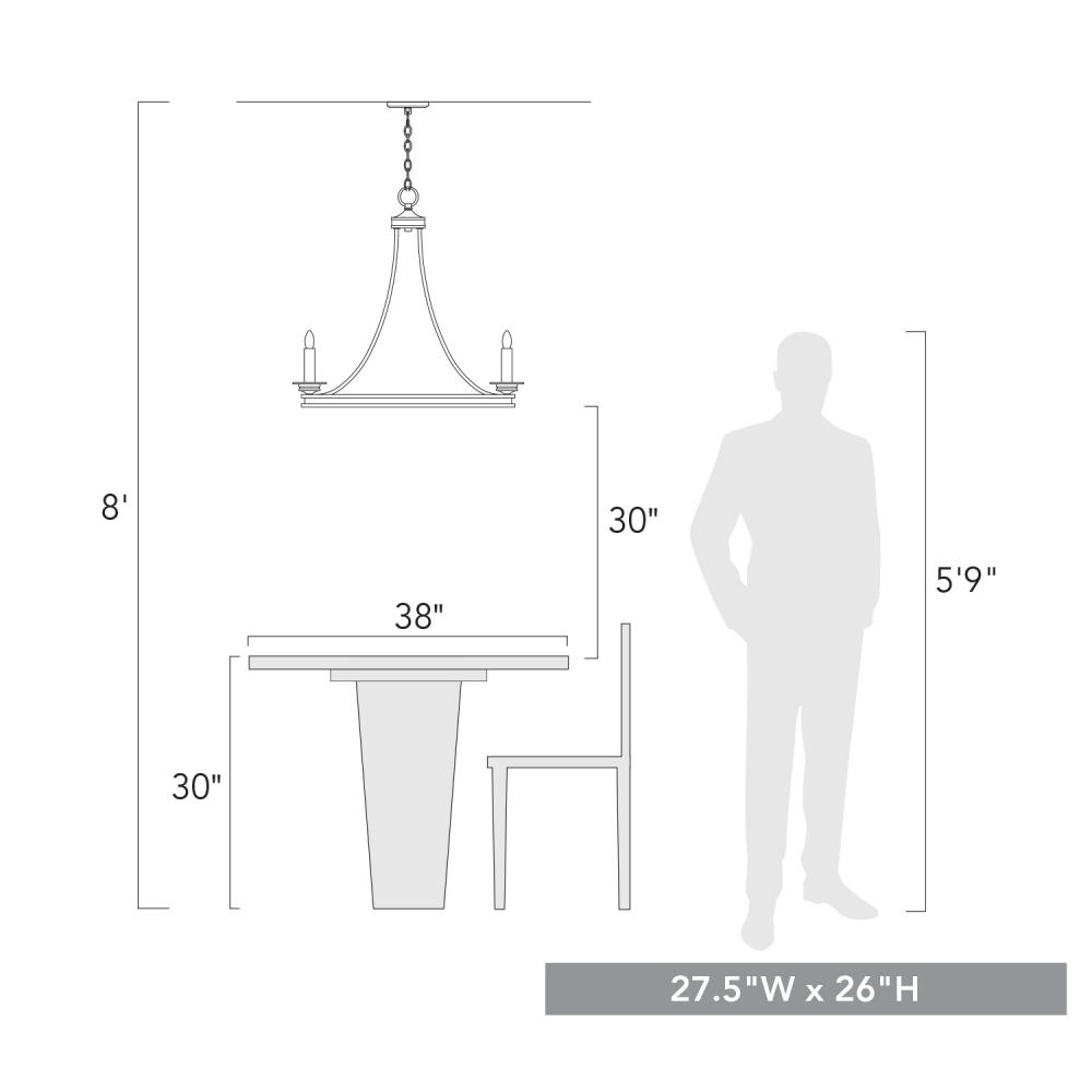 Bring modern elegance into your home with the Golden Lighting Saldano 5-light Chandelier. This fixture creates a welcoming atmosphere with its sleek design and clean lines. The Mat Black finish offers a smooth, timeless aesthetic that absorbs light, providing a sophisticated look in any decor. Use this chandelier to light up your space with its impressive five candelabra-style bulbs, perfect for illuminating dining rooms or entryways. Dry Location Rated, it's ideal for indoor use, and the adjustable height feature allows for personalization to fit any ceiling. With overall dimensions of 27.5"W x 26"H x 27.5"D, it requires five E12 candelabra base bulbs (not included), with a maximum wattage of 60 per bulb. This chandelier harmonizes classic elegance with contemporary simplicity, making it a timeless addition to your home.