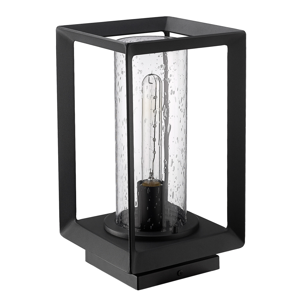 Golden Lighting Smyth 1-light Outdoor Pier Mount in Natural Black and Seeded Glass