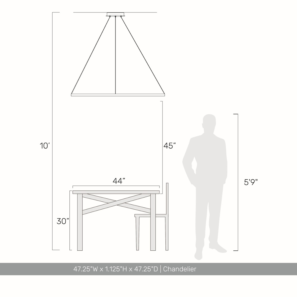 Bring modern elegance into your home with the Golden Lighting Veritas Integrated LED 59in Chandelier. This chandelier features a sleek design without a shade, showcasing the beautiful Sand White finish that adds a fresh touch to any space. This light, neutral finish has a smooth matte surface and fine sandy texture, making it visually appealing and soft to the touch—perfectly suited for minimalist and contemporary decor. Ideal for use in dining rooms, foyers, or as a stylish addition to bedrooms and living areas, this chandelier is rated for dry indoor spaces. It is easily installed on sloped ceilings, and its adjustable height (30"-123") allows you to customize it to fit perfectly in your room. Overall dimensions are 47.25"W x 1.13"H x 47.25"D, with integrated LED technology that provides 5400 lumens at a warm 3000K color temperature to create a welcoming atmosphere. Let your lighting reflect your style and quality with the Golden Lighting Veritas Chandelier.