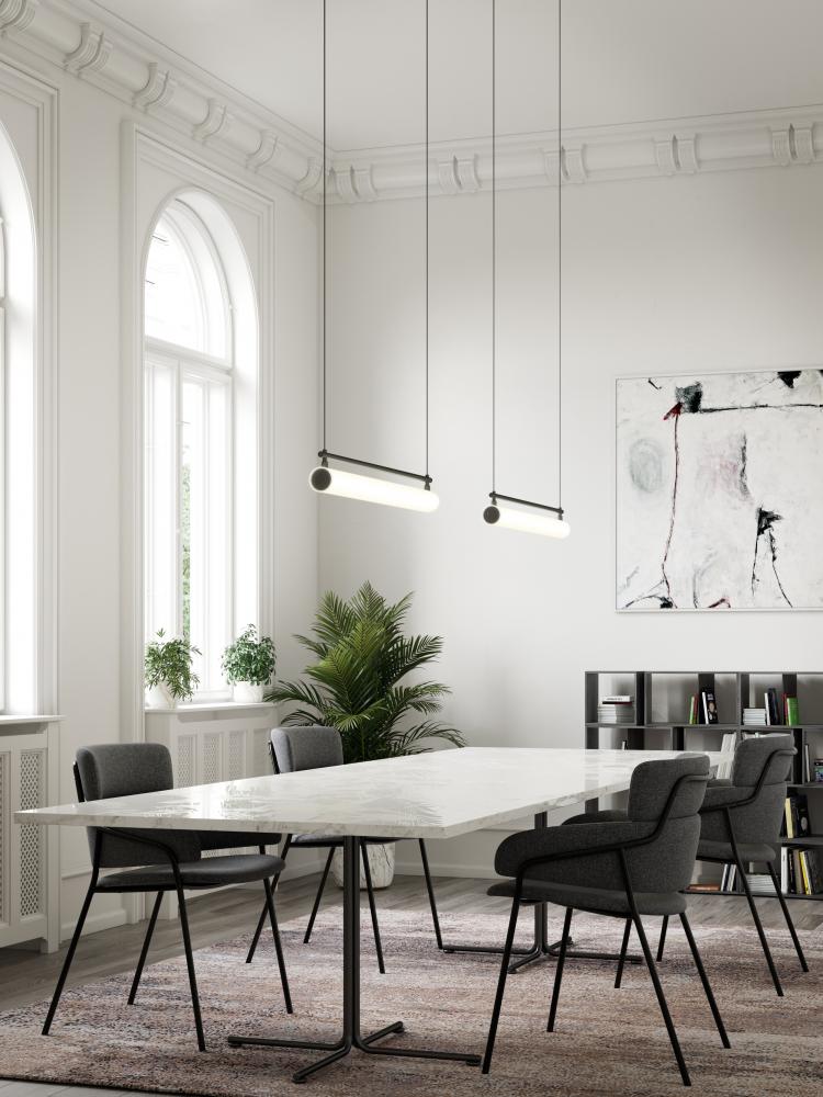 Frosted glass cylinders, available as a single or in multiples, are composed around an aluminum die-cast body, emitting an even 360 Degrees glow of ambient light. The Gramercy standing fixtures feature a touch dimmer and a black finish.