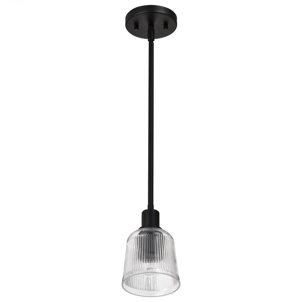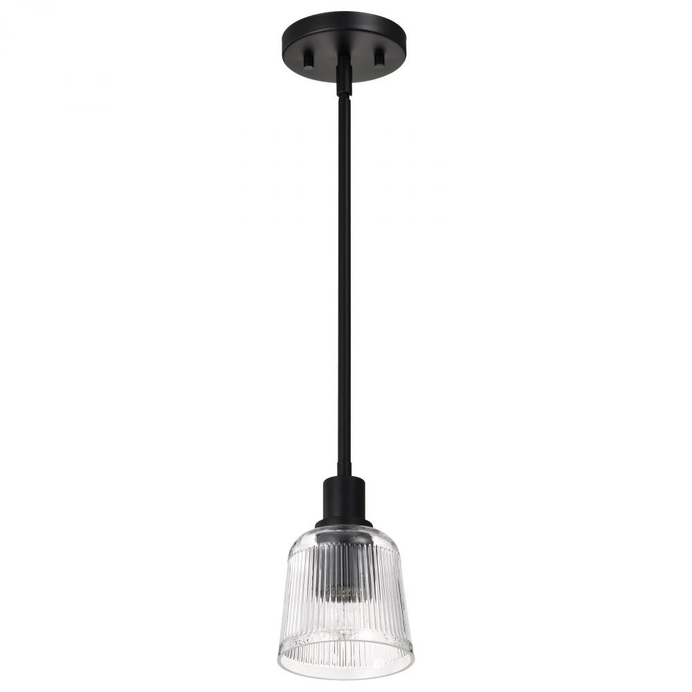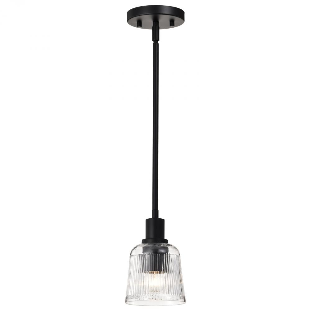 Grayson; 1 Light Mini Pendant; Matte Black Finish; Clear Ribbed Glass