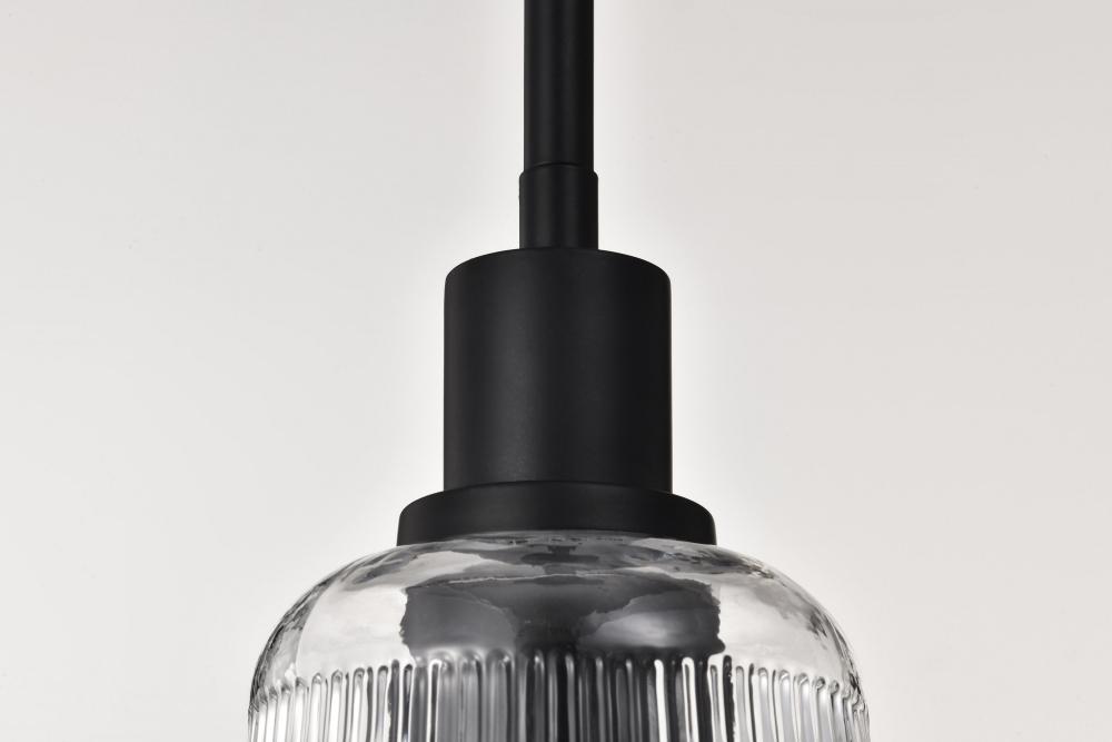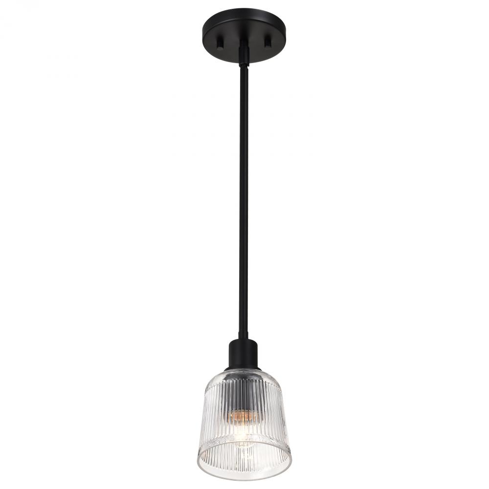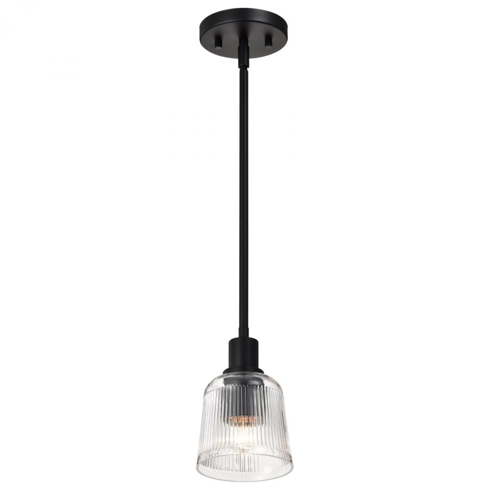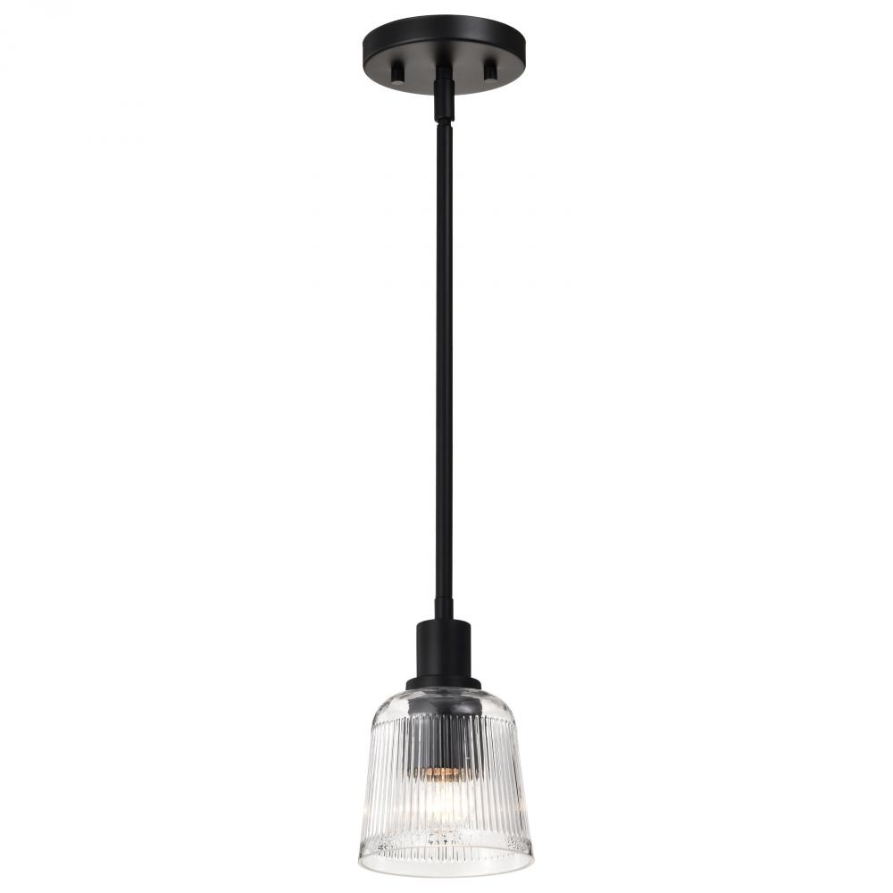 Grayson; 1 Light Mini Pendant; Matte Black Finish; Clear Ribbed Glass