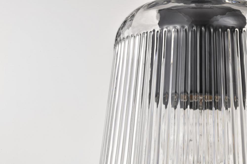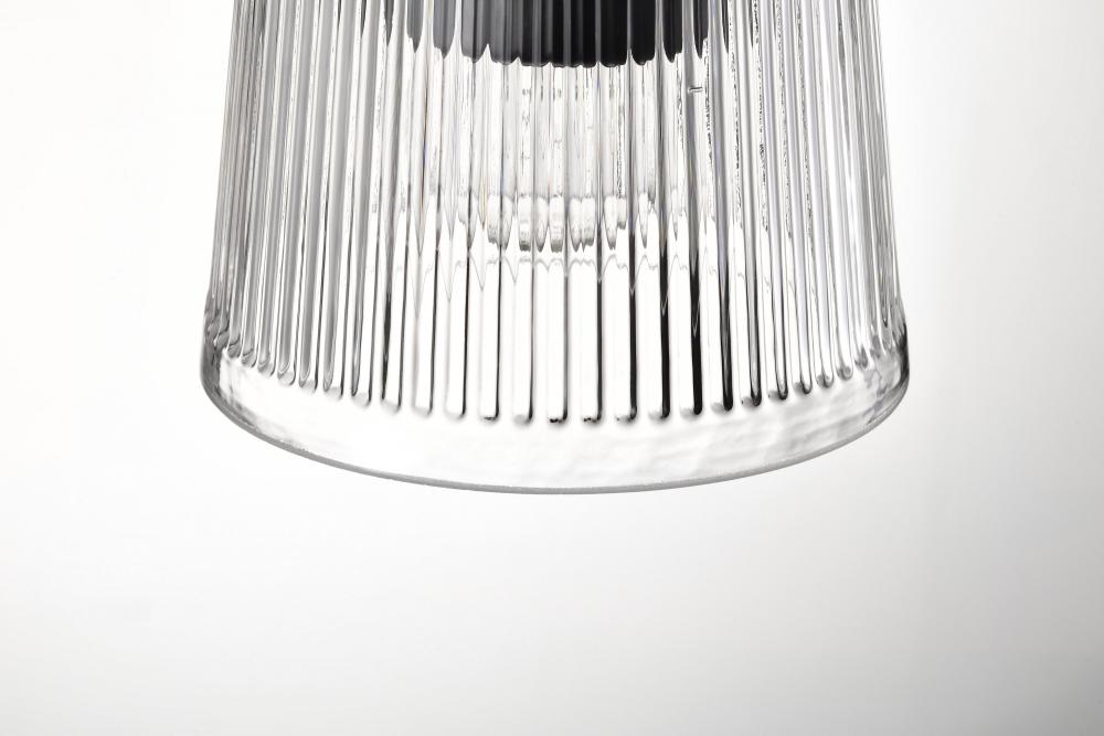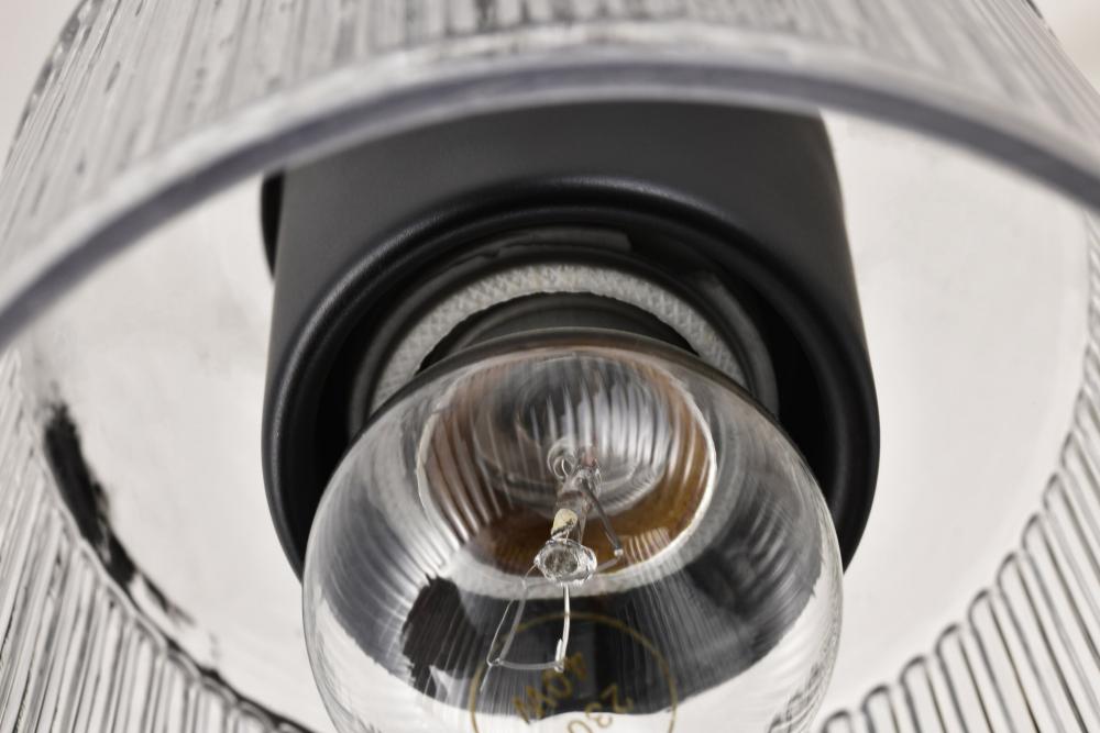 Finished in Matte Black with Clear Ribbed Glass