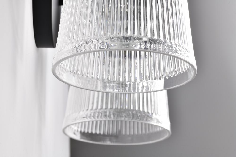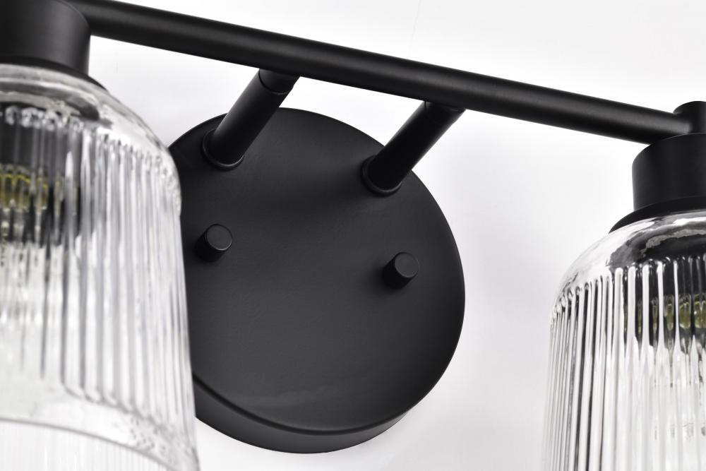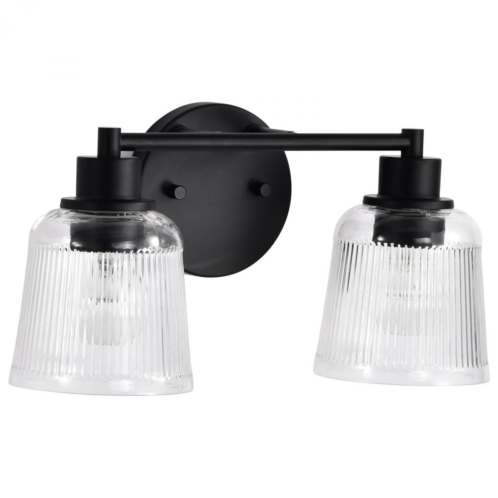 Grayson; 2 Light Vanity; Matte Black Finish; Clear Ribbed Glass
