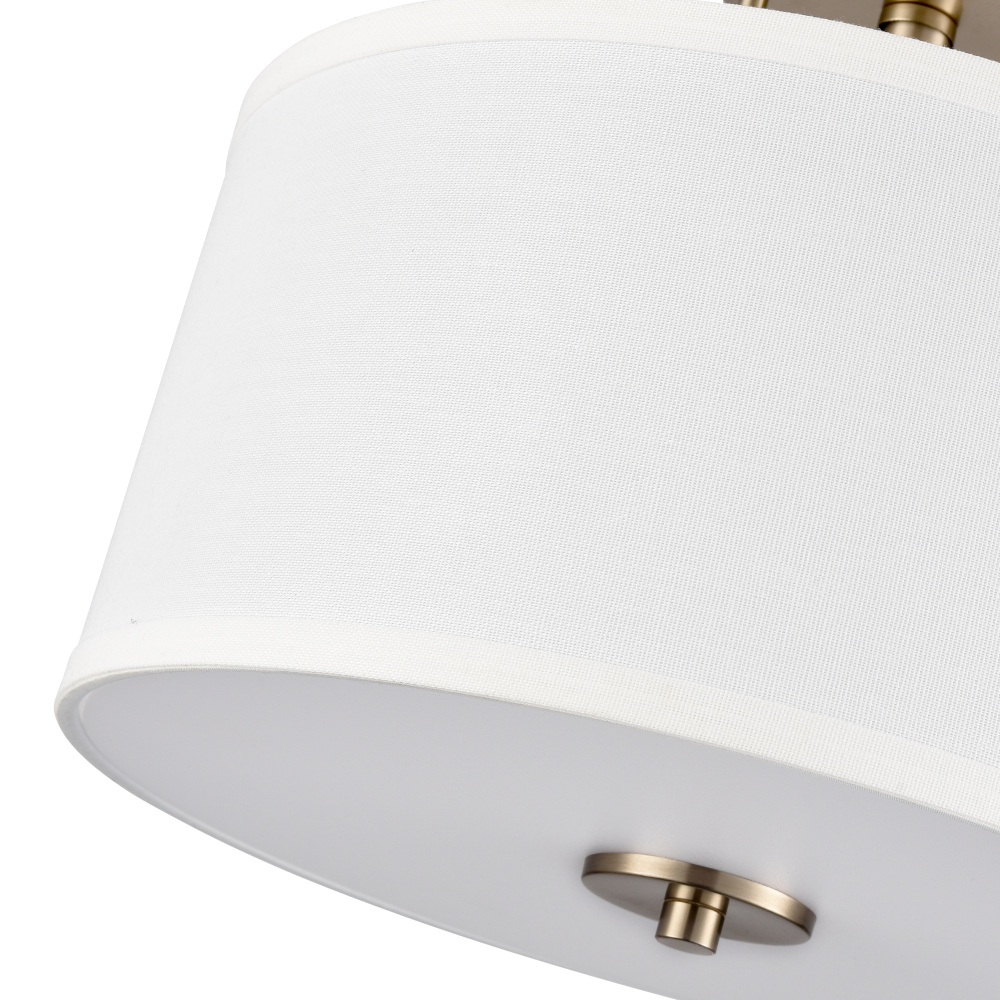 The Guyton Family of semi-flush and flush-mount lighting is defined by the crisp, white fabric shades, providing a warm and diffused effect. These fixtures are the perfect choice for an understated and polished design statement in any interior scheme, from ultra-modern to Art Deco. Whether selecting the matte black, brushed nickel, or modern gold finish, these 2-light fixtures provide the perfect glow for the foyer, hallway, or bedroom.