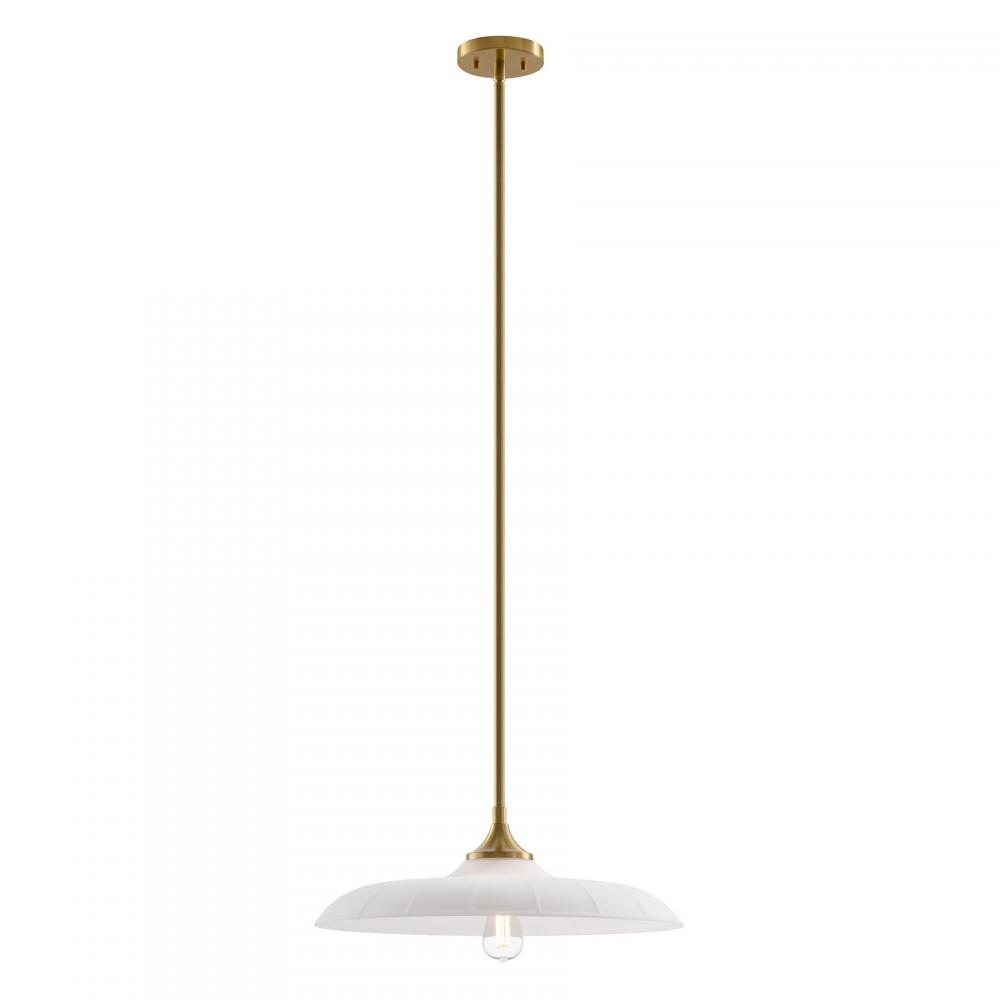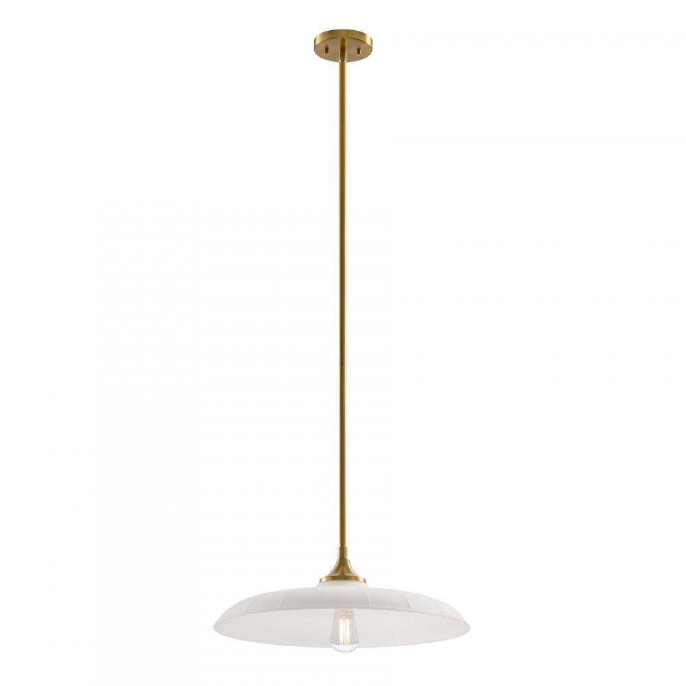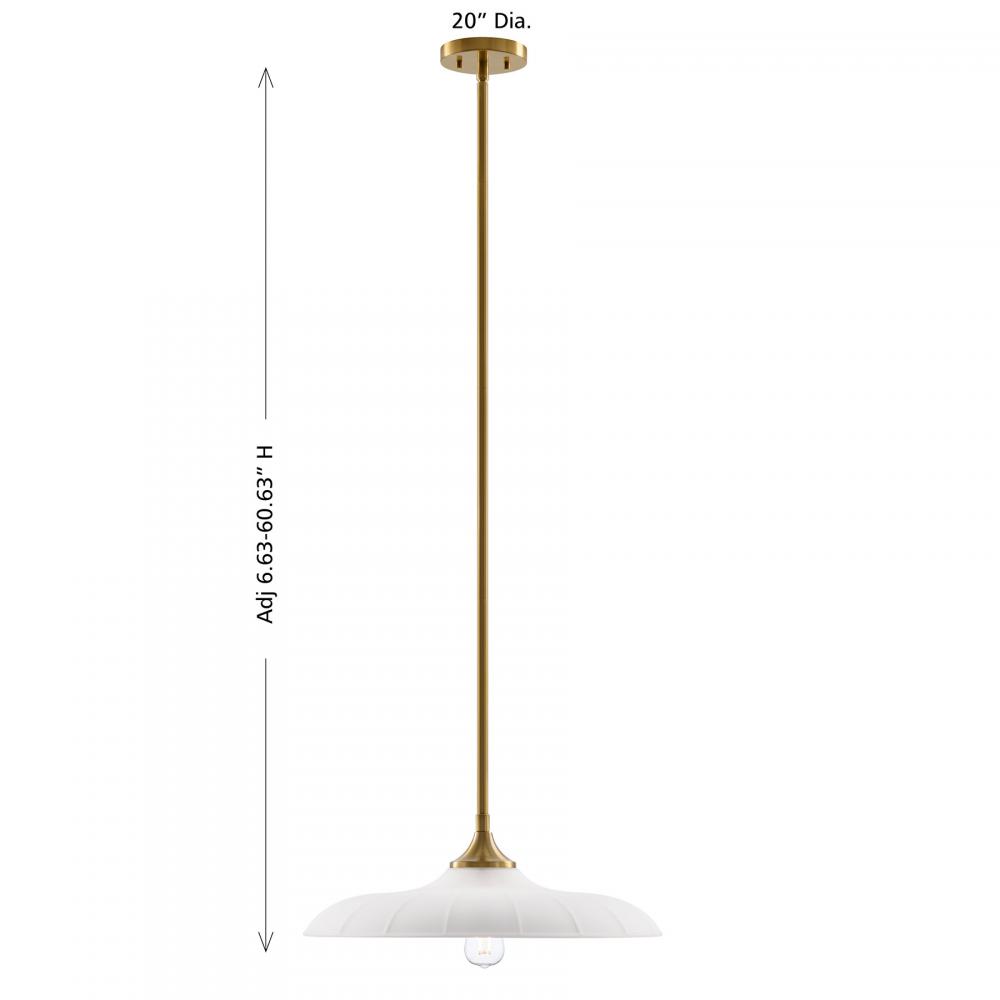 Welcome a look inspired by vintage workshop style with the Savoy House Hadley 1-light pendant. Its sleek, standout shade of subtly ribbed opal glass pairs beautifully with the Warm Brass finish. Use it solo or in groupings for a big boost of appeal! Hadley is 20" in width and has an adjustable height ranging from 6.63" to 60.63". It uses one standard size bulb of up to 60 watts. Bulb not included. Comes with four 12" downrods and one 6" downrod.