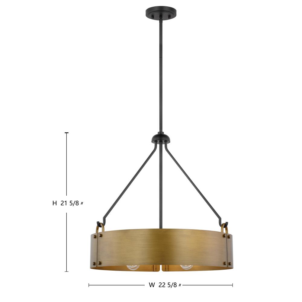 Halter; 4 Light Pendant; Medium Base; 60 Watt; Matte Black Finish; Natural Brass Metal Shade