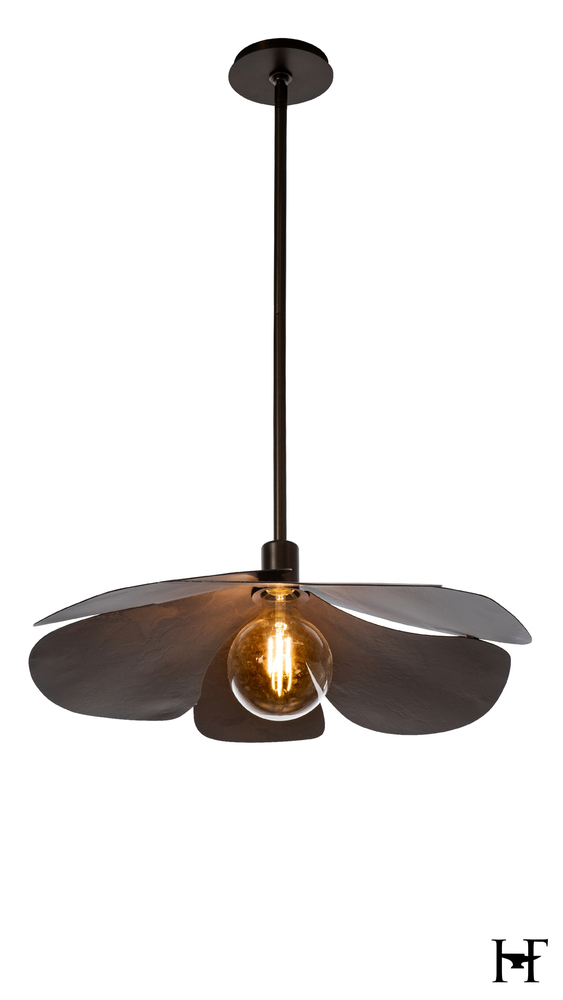 Designed by David Kitts, this beautifully handcrafted pendant is simple in its beauty. In Japanese, Hana translates to "flower". Hana also means "craft" in Hawaiian and perhaps most beautifully, in Maori, "to shine, glow, give out love or radiance." This pendant's "petals" are hand-forged in 1800º fires of the Forge, giving them each unique texture.