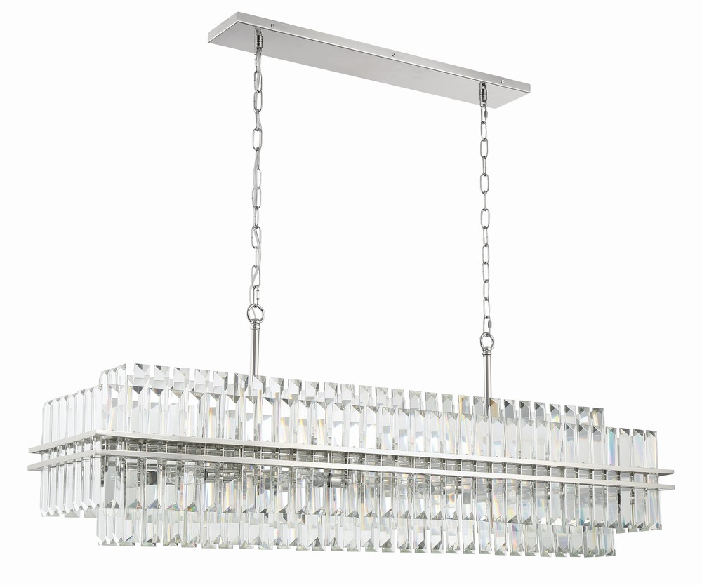 Create a lasting impression with the Hayes collection. This stunning masterpiece features tiered multi-faceted crystals elegantly held by a sleek steel frame. The sophisticated design transforms any space into a captivating focal point. Elevate your surroundings with the Hayes collection's striking beauty and mesmerizing presence.