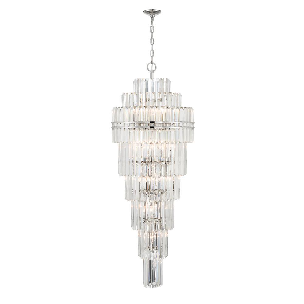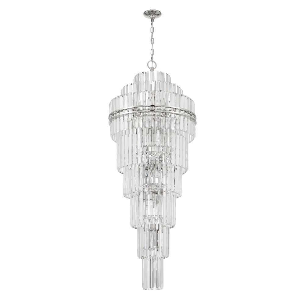 Create a lasting impression with the Hayes collection. This stunning masterpiece features tiered multi-faceted crystals elegantly held by a sleek steel frame. The sophisticated design transforms any space into a captivating focal point. Elevate your surroundings with the Hayes collection's striking beauty and mesmerizing presence.