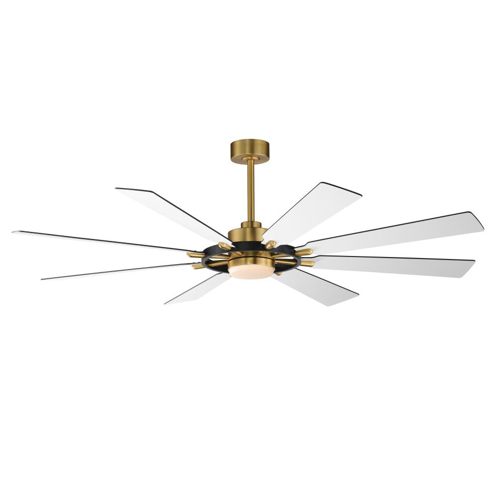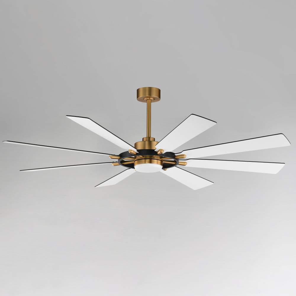 Inspired by the steering wheel of a nautical ship, the Helm fan boasts an impressive 72" blade span and stylish two-tone finishes. Its plywood blades offer dual-sided contrasting finishes, allowing for customizable design. Choose from a Black frame wit