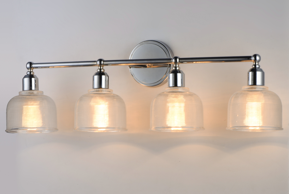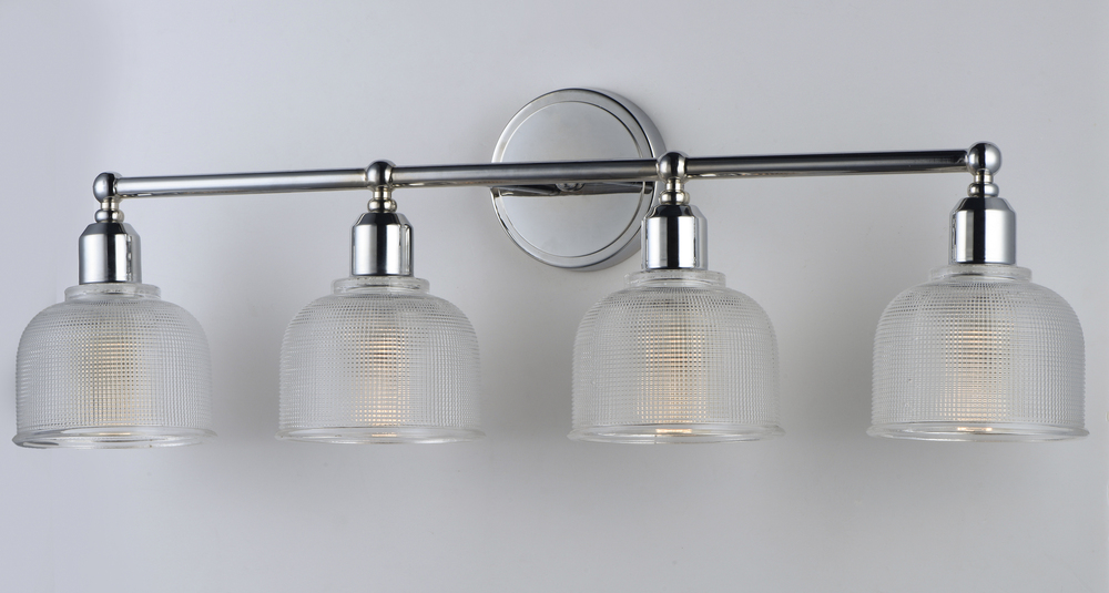 Crisp and clean define this new collection with Polished Chrome frames and Clear, prismatic shades. The geometric pattern of the glass diffuses the glare while providing ample light.