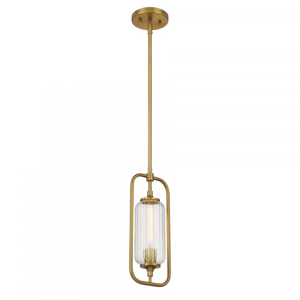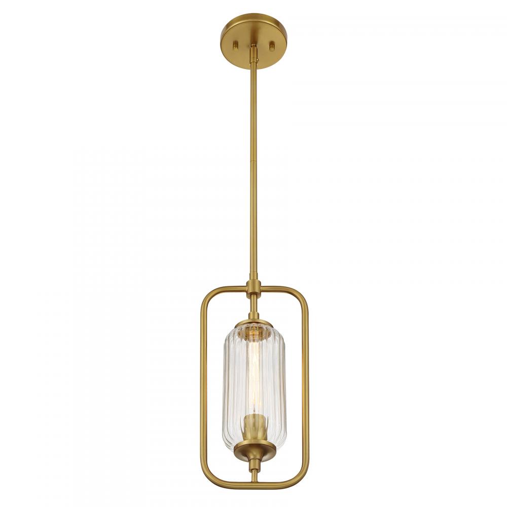 The Savoy House Holton 1-light mini pendant showcases an inventive and geometric style with a tall, rounded shade of clear ribbed glass and a slim, rounded structure finished in Warm Brass. It will bring a big dose of style to any space! Holton is 6.5" in width and has an adjustable height ranging from 15.25" to 44.75". It uses one standard size bulb of up to 60 watts. Bulb not included. Comes with three 9.5" downrods.