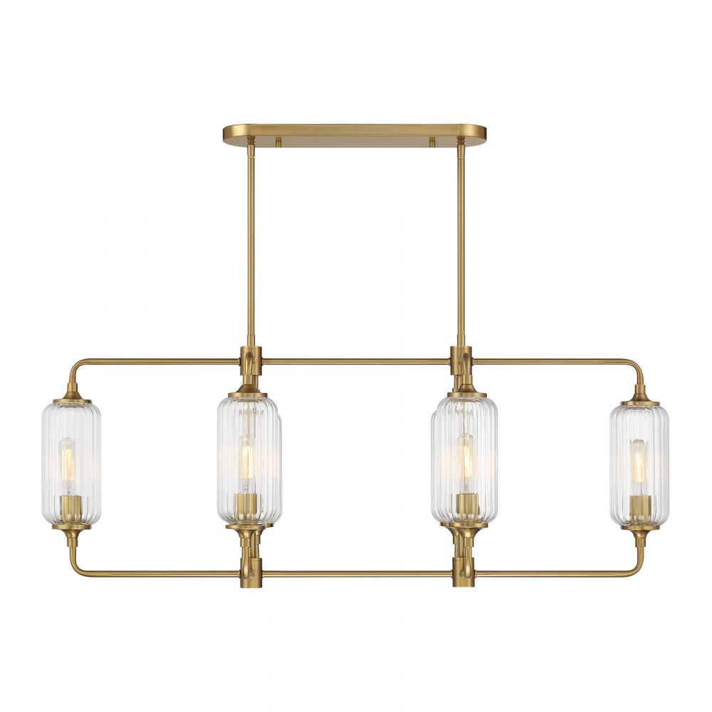 The Savoy House Holton 6-light linear chandelier showcases an inventive and geometric style with tall, rounded shades of clear ribbed glass and a slim, rounded structure finished in Warm Brass. It will bring a big dose of style to any space! Holton is 42" in length, 16" in width and has an adjustable height ranging from 17" to 71". It uses six standard size bulbs of up to 60 watts per bulb. Bulbs not included. Comes with eight 12" downrods and two 6" downrods.