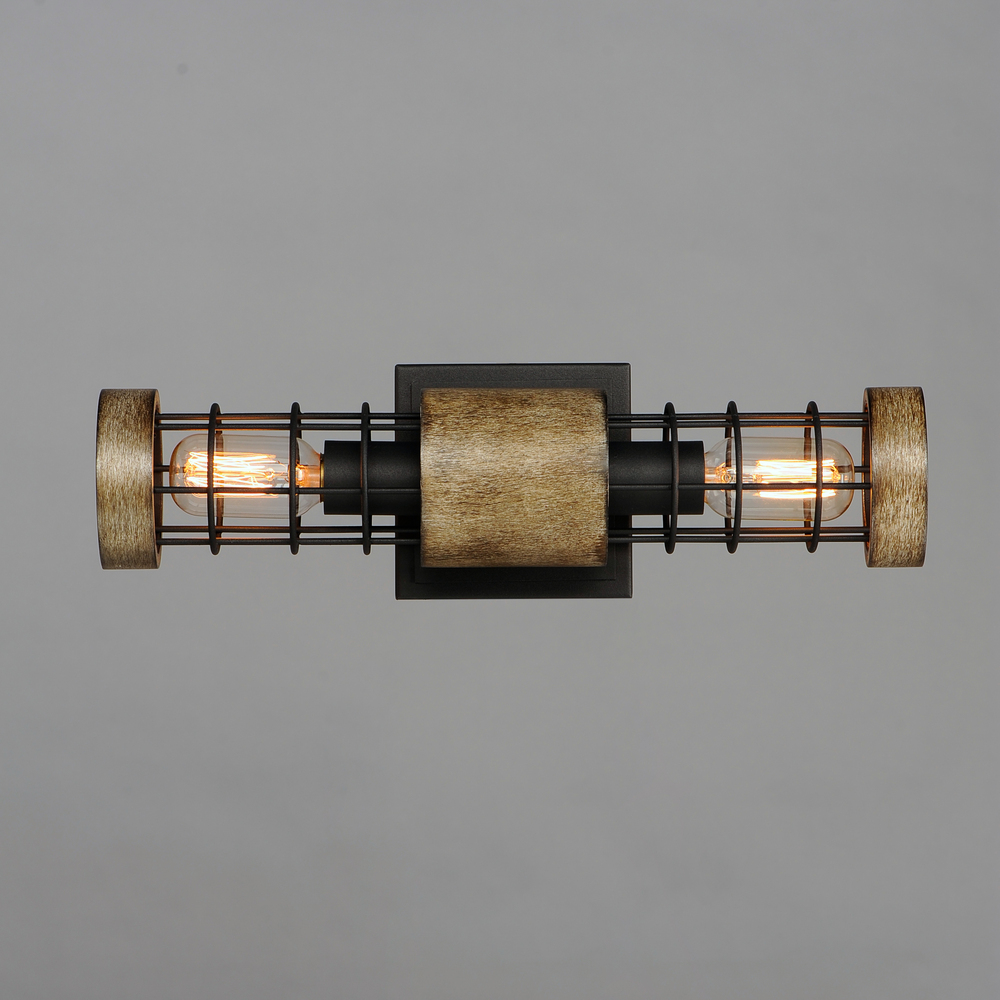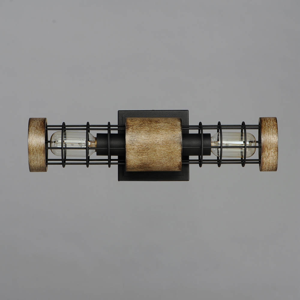 A modern blend of metal and wood is the perfect way to bring a little slice of rustic decor to any room. Exposed lamps are caged in a black metal framework and accented with distressed wood tones bringing this design out of the barn and into the 21st centu