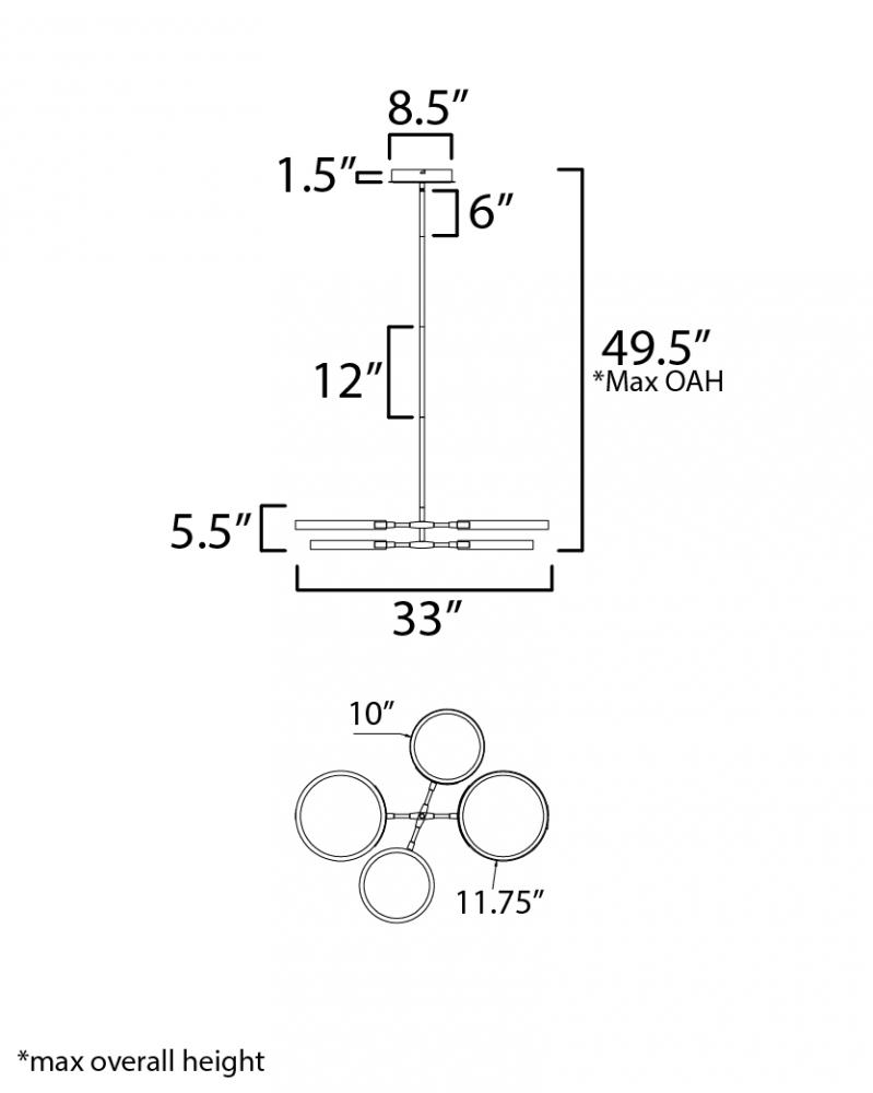 Rings of various sizes finished in Black are supported from a column of soft Gold. This European classic is a soft contemporary design which works in today's home decor.