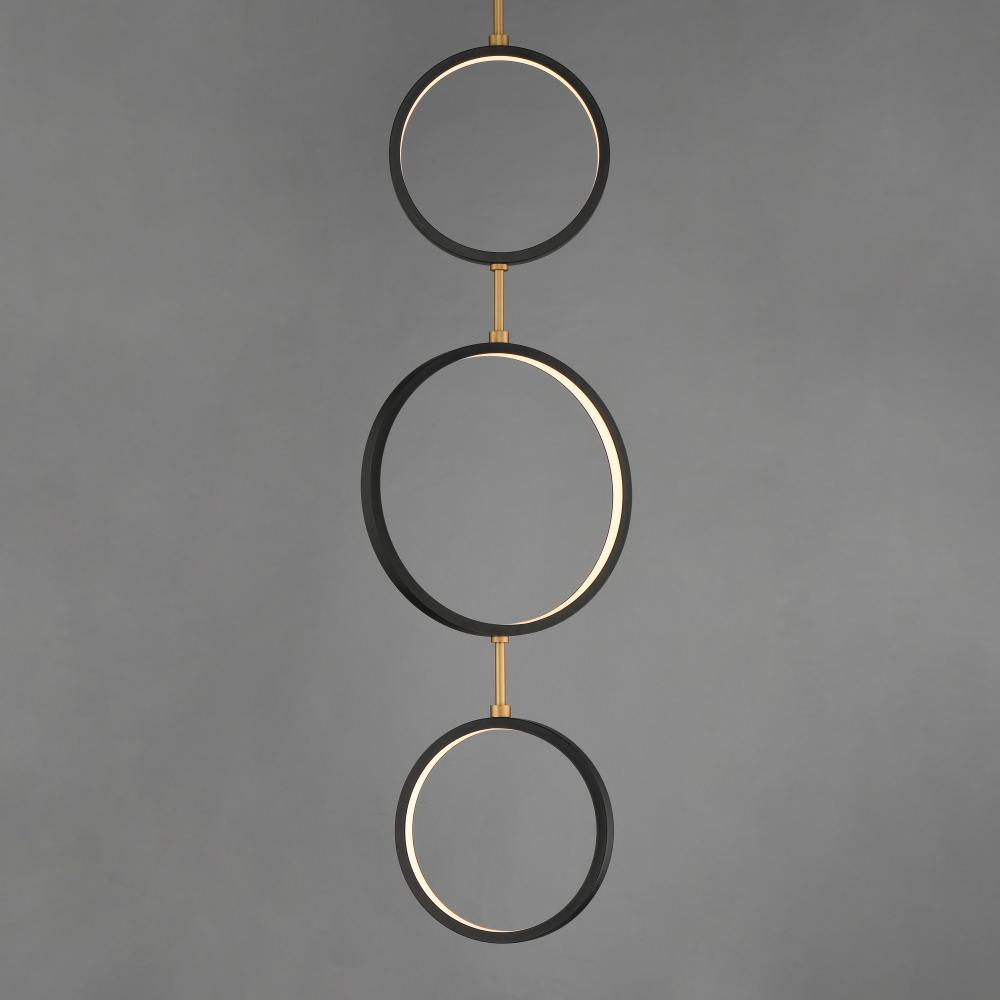 Rings of various sizes finished in Black are supported from a column of soft Gold. This European classic is a soft contemporary design which works in today's home decor.