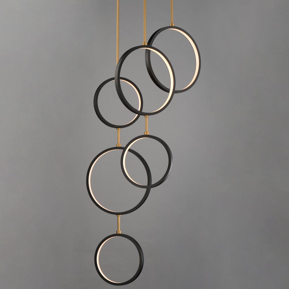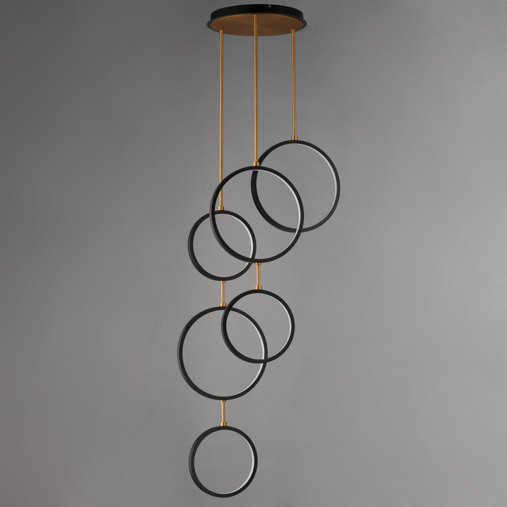 Rings of various sizes finished in Black are supported from a column of soft Gold. This European classic is a soft contemporary design which works in today's home decor.