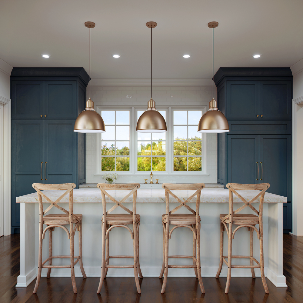Minimalist, farmhouse fixture with traditional form will complement any dining room, kitchen, or foyer