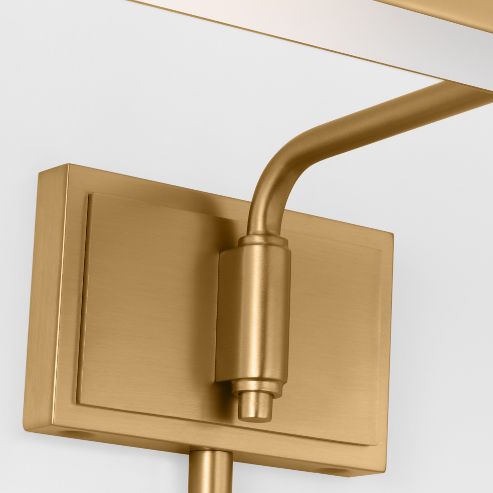 Transitional fixture with pivoting burnished brass steel shade will provide light to highlight any piece