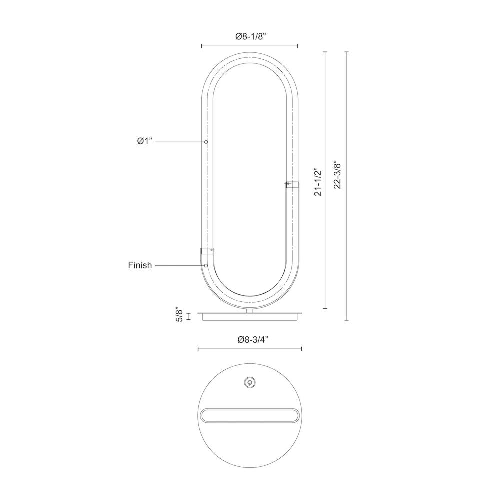 Steel base with die-cast aluminum body, acrylic frosted tube, matte powder-coated or plated finish