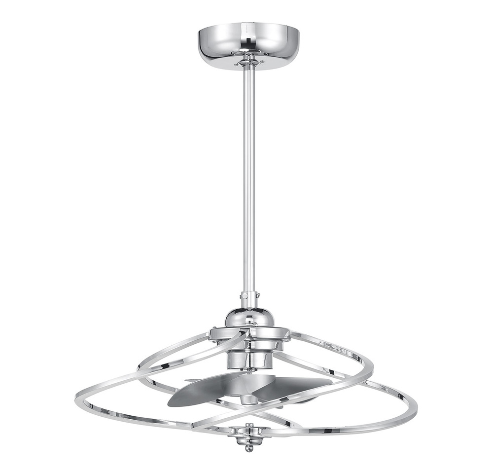 Add a hint of magic to your home with the Savoy House Hydra Fan D'Lier, which blends the chandelier and the ceiling fan into one fabulously fashionable fixture. Its swirling bands of integrated LED light encircle the fan, which is finished in Polished Chrome. Hydra uses an efficient DC motor and has a handheld remote control for extra convenience. It is 24" in width and 11.5" in height. Comes with a 4" downrod and an 18" downrod. Fan D'Liers are a Savoy House exclusive. These custom designs are inspired by high-end designer styles and take top trends to a whole new level.