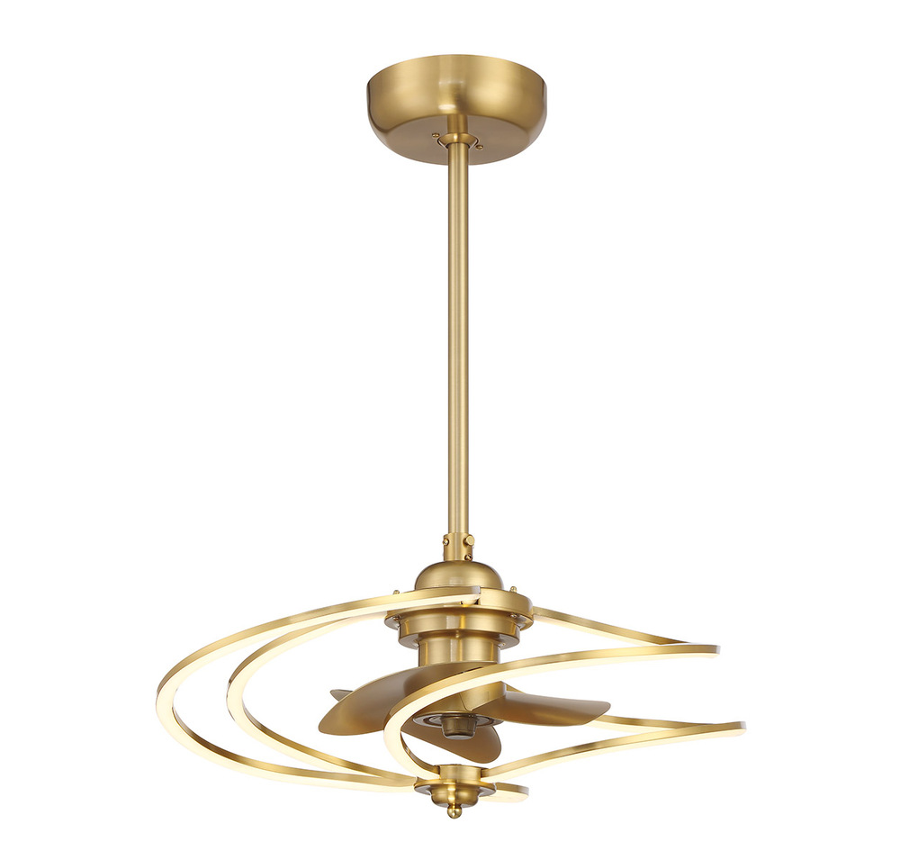 Add a hint of magic to your home with the Savoy House Hydra Fan D'Lier, which blends the chandelier and the ceiling fan into one fabulously fashionable fixture. Its swirling bands of integrated LED light encircle the fan, which is finished in Warm Brass. Hydra uses an efficient DC motor and has a handheld remote control for extra convenience. It is 24" in width and 11.5" in height. Comes with a 4" downrod and an 18" downrod. Fan D'Liers are a Savoy House exclusive. These custom designs are inspired by high-end designer styles and take top trends to a whole new level.